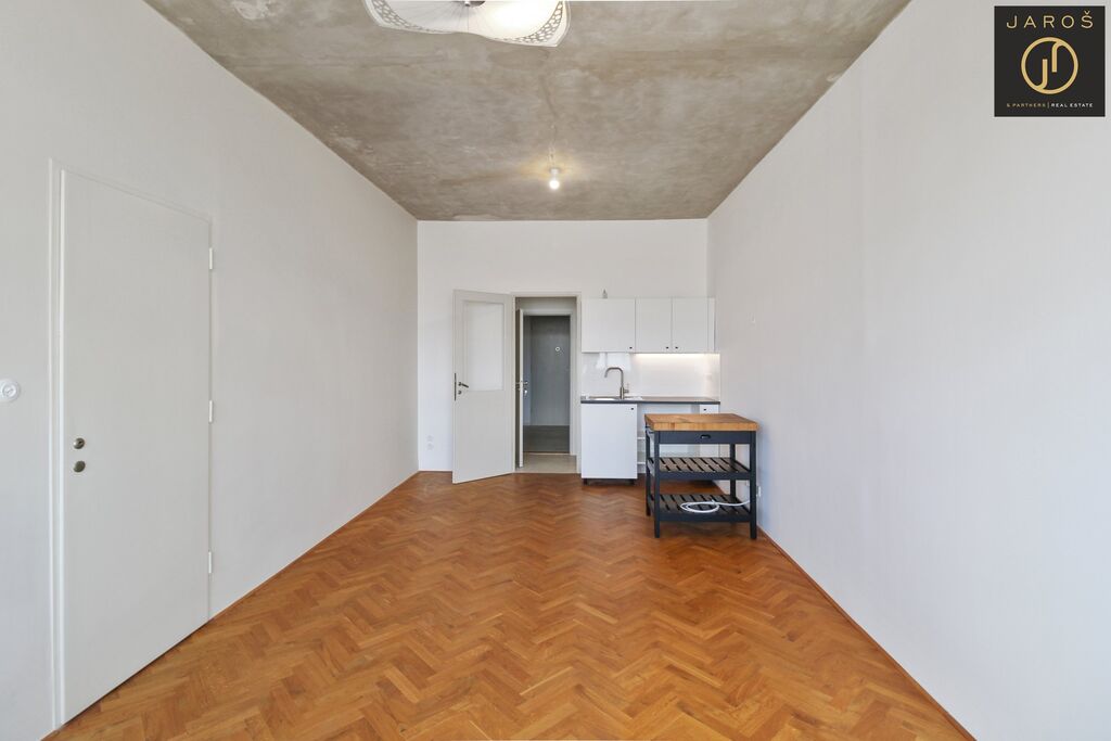 Nabízíme Vám k pronájmu byt 1+kk, 32 m2, který je po kompletní rekonstrukci. Bytová jednotka se nachází v lokalitě pražských Vinohrad, v ulici Londýnská v 5. patře udržované budovy a její dispozice zahrnuje vstupní chodbu, koupelnu s vanou a toaletou a hlavní obytnou místnost s kuchyňským koutem. Do bytu se vstupuje přes chodbu sdílenou s vedlejším bytem, kde se také nachází menší komora s přípojkou na pračku.