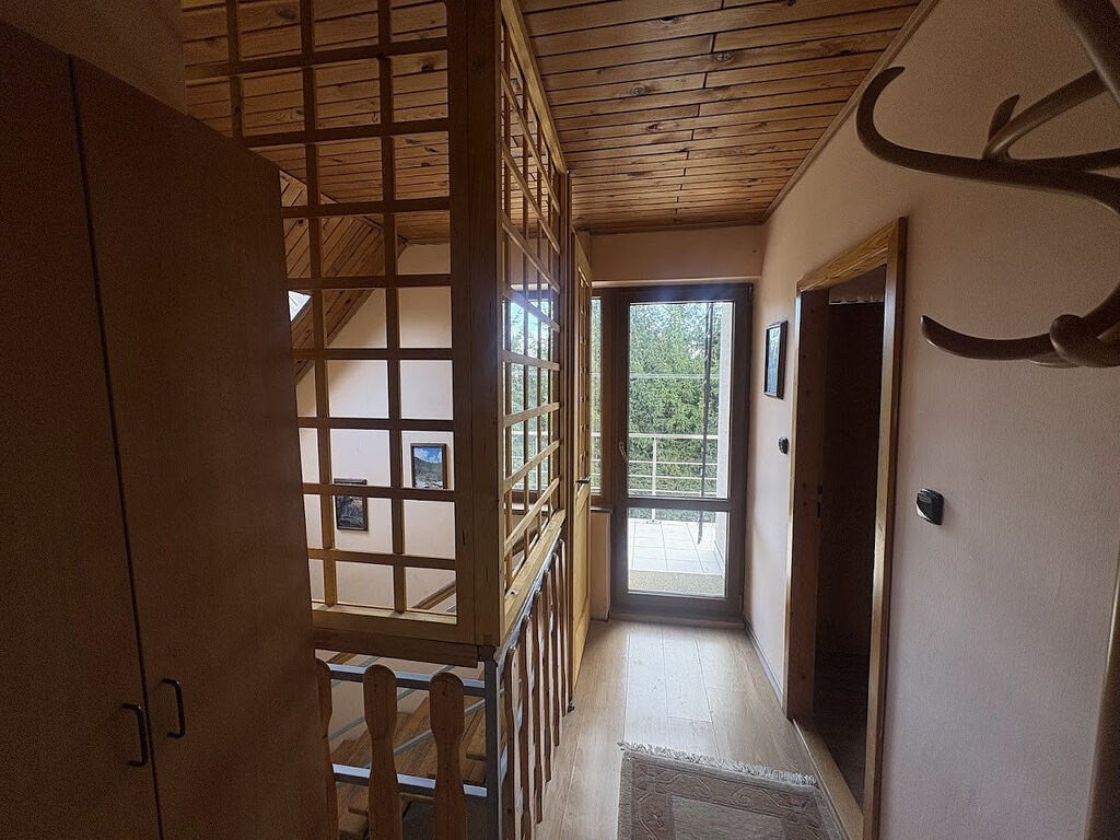 Jedná se o byt o podlahové ploše cca 55 m². Byt má vlastní vchod, plastová okna a 2 pěkné balkóny. Celé patro je uzamykatelné Dispozice: vstupní zádveří, schodiště, kuchyně, 2 obytné pokoje, koupelna s vanou a samostatné WC. Na každé straně bytu je 1 balkón. Vytápění plynovým kotlem na celý dům.