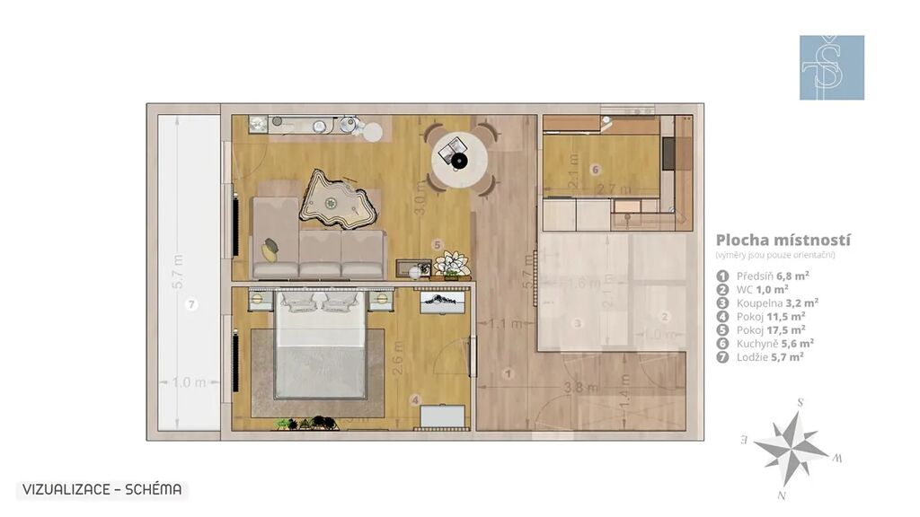 - lodžie 5,7 m2 prostorná, krytá a chráněná před pohledy kolemjdoucích, ideální pro ranní kávu nebo večerní posezení