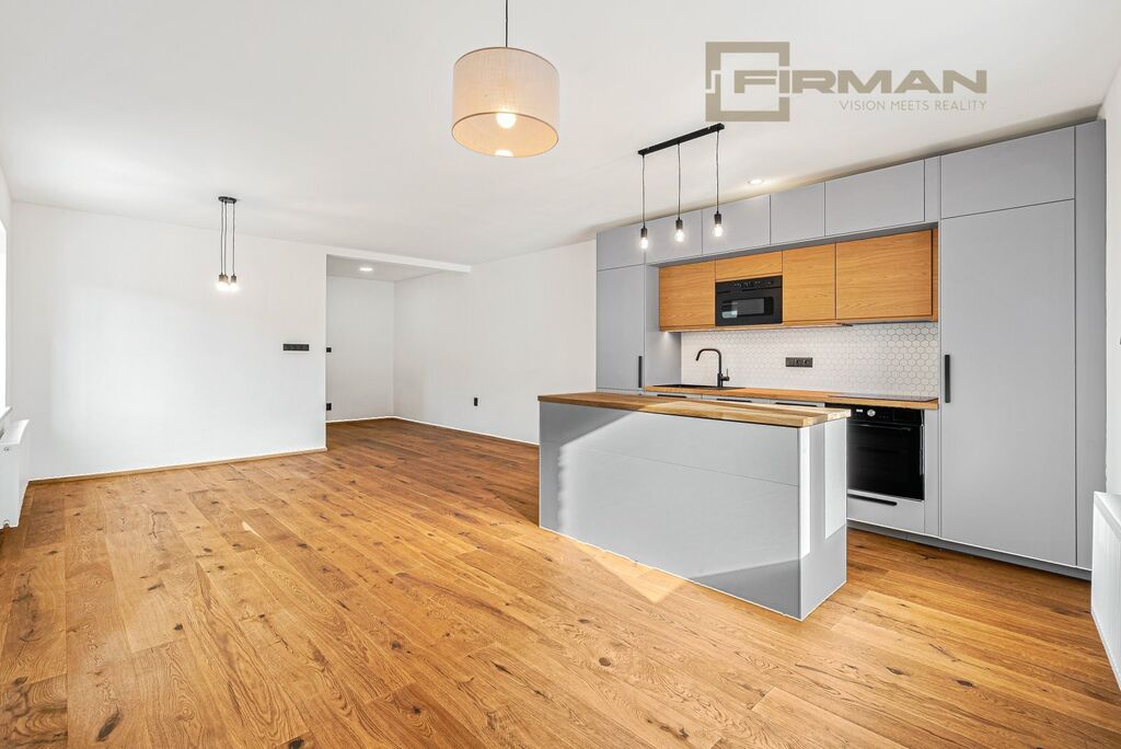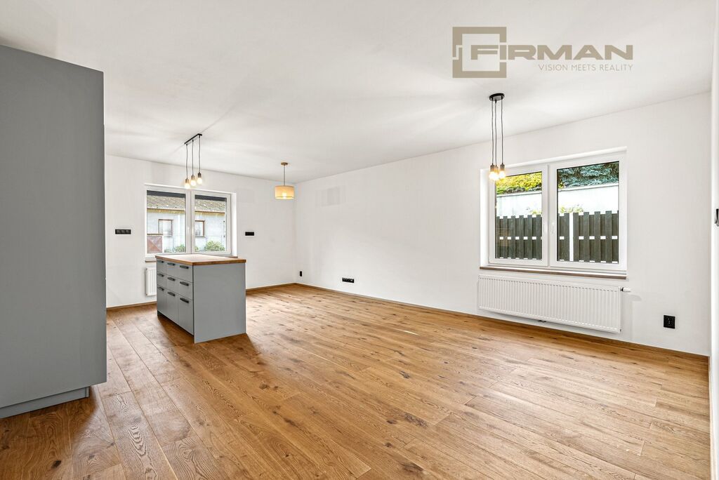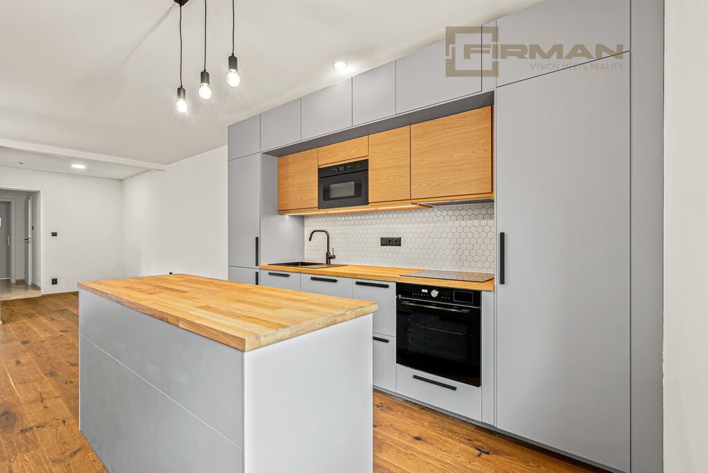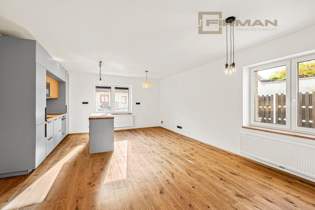 Spodní byt o dispozici 2kk + pracovna je proveden s použitím stejných materiálů, je zde také nová, moderní kuchyně a stejně jako u horního bytu byl i zde kladen důraz na kvalitní zpracování a především na vytvoření příjemné atmosféry, abyste se zde od prvního okamžiku cítili doma.