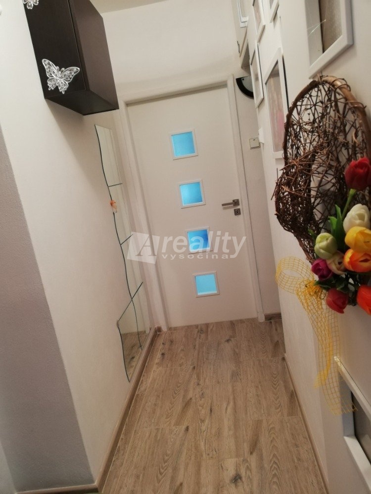 Dispoziční řešení: z předsíně je nalevo vstup do ložnice, samostatné WC, naproti vchodu do bytu se dostaneme do kuchyně s kuchyňskou linkou, odtud nalevo do koupelny s umyvadlem a vanou a napravo do obývacího pokoje se vstupem na balkon. Všechna okna jsou orientována na slunnou jižní stranu-středový byt. Na podlahách v pokojích jsou parkety, v kuchyni plovoucí podlaha. Vytápění je řešeno elektrickými přímotopy, ohřev vody přes vlastní bojler umístěný v kosupelně. V bytě jsou nové rozvody elektřiny 220V + 380V.