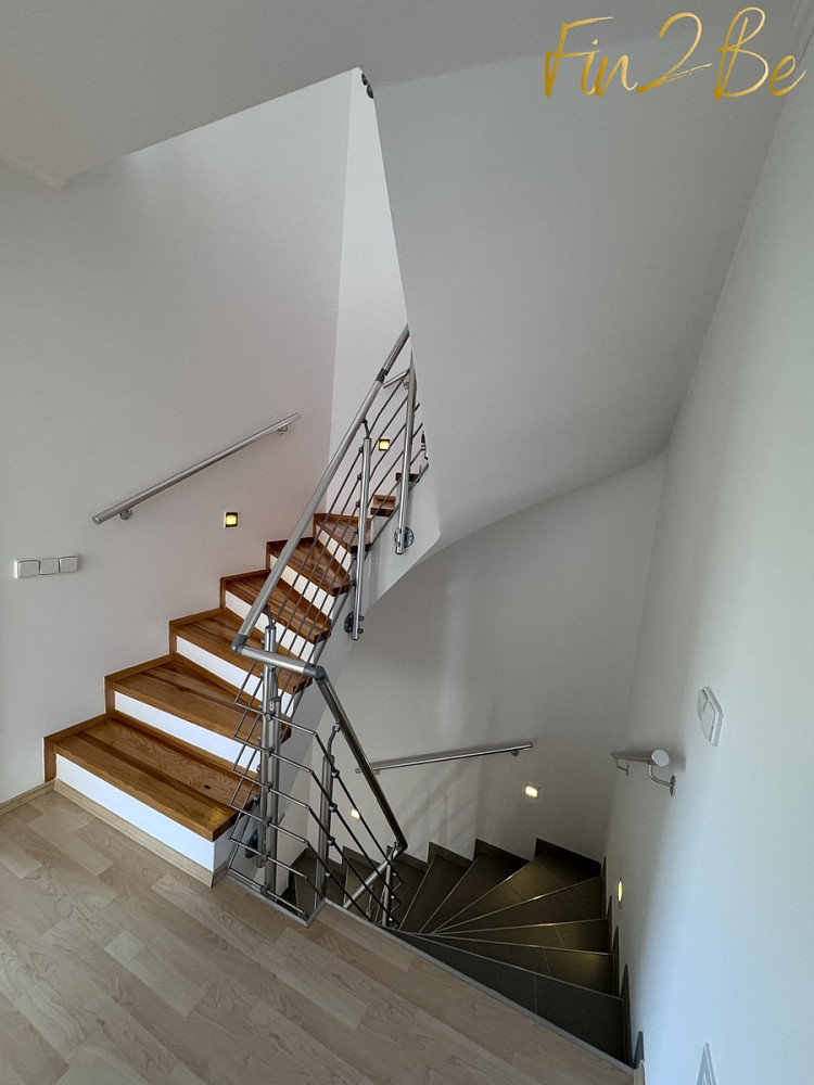 Dům je mimořádně úsporný. Patří do energetické třídy B, což znamená nízké provozní náklady i při takto prostorné dispozici. Měsíční poplatky se pohybují okolo 6.000,- Kč. Komfort bydlení zajišťuje podlahové topení a možnost přitopit si v krbových kamnech. Součástí bytu je také balkón, garáž a venkovní parkovací stání.