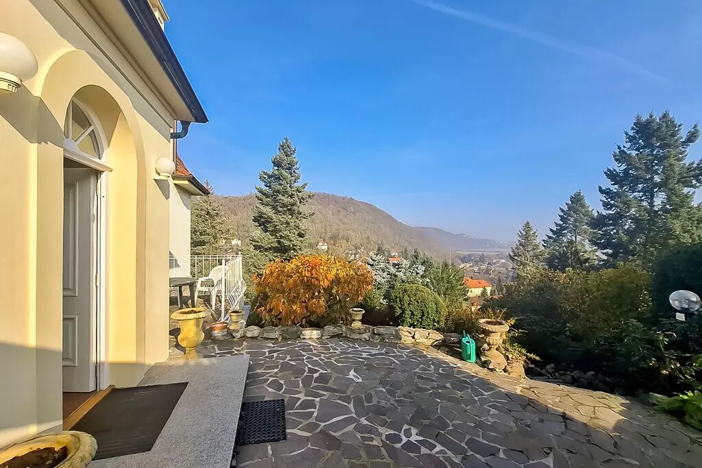 Vila o užitné ploše cca 300 m2 stojí na pečlivě udržované zahradě o rozloze 1 750 m2 a nabízí prostorné a světlé interiéry rozložené do několika podlaží.