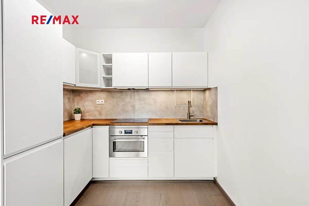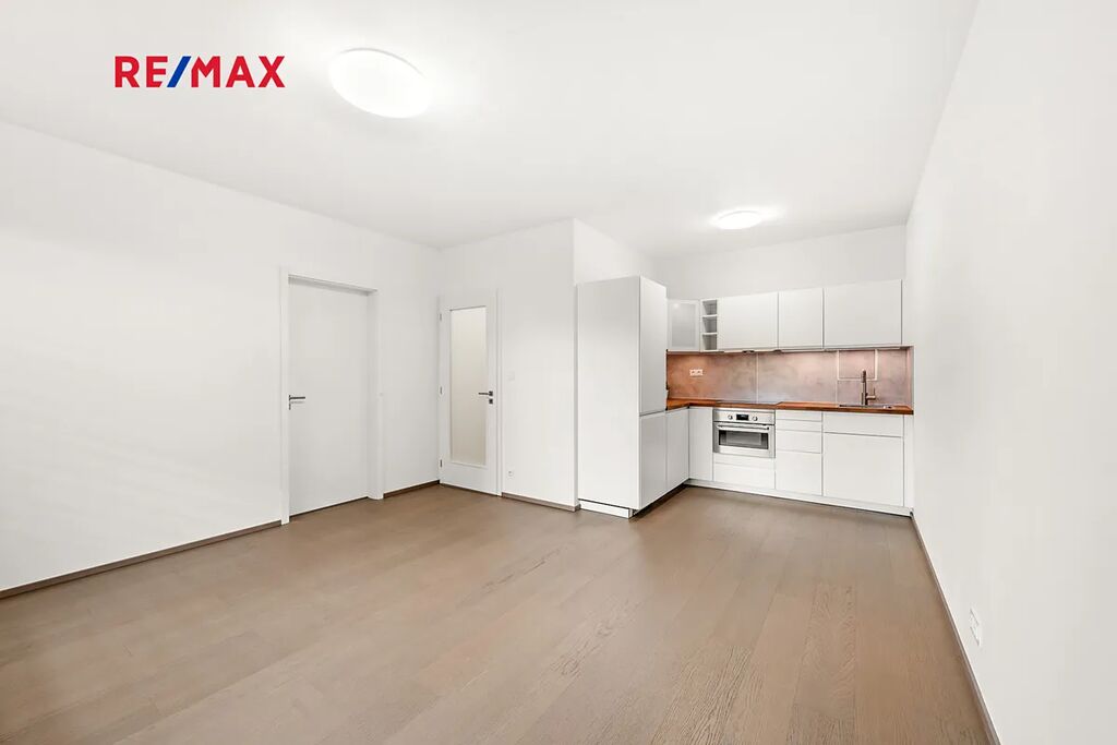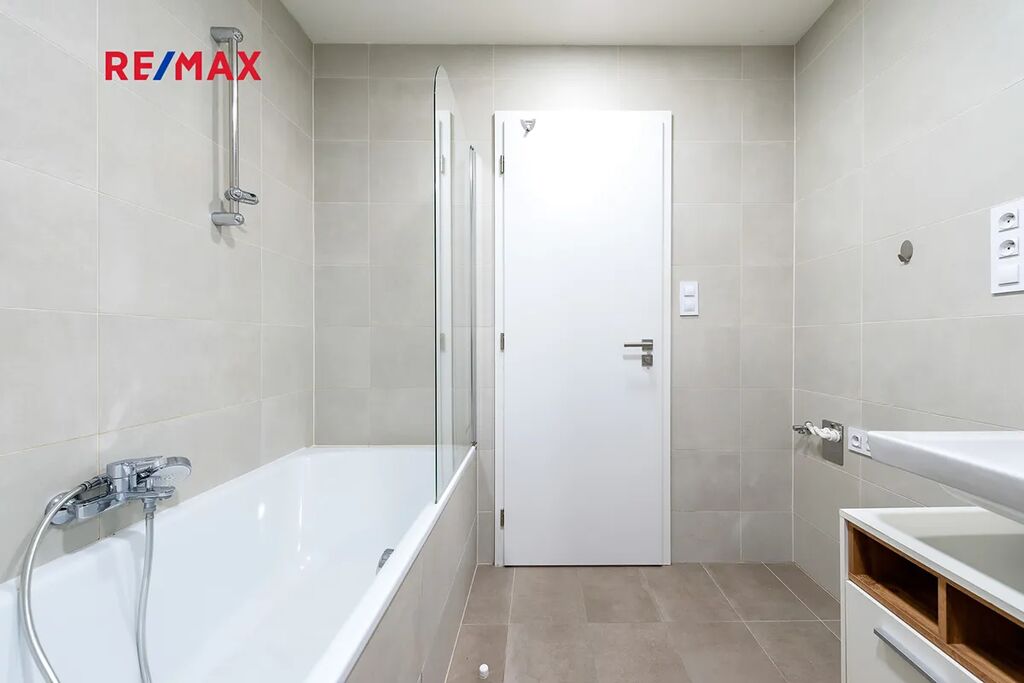 Interiér* bytu je ve výborném stavu, působí jako nový. Dominantou obývacího prostoru jsou velká francouzská okna orientovaná na jih, která zajišťují dostatek světla po celý den. Podlahy tvoří kvalitní laminát, v bytě je instalována nová kuchyňská linka s moderními spotřebiči. V koupelně se nachází prostorná vana, v ložnici velká vestavěná skříň poskytující dostatek úložného prostoru. Součástí prodeje je garážové stání v suterénu domu.