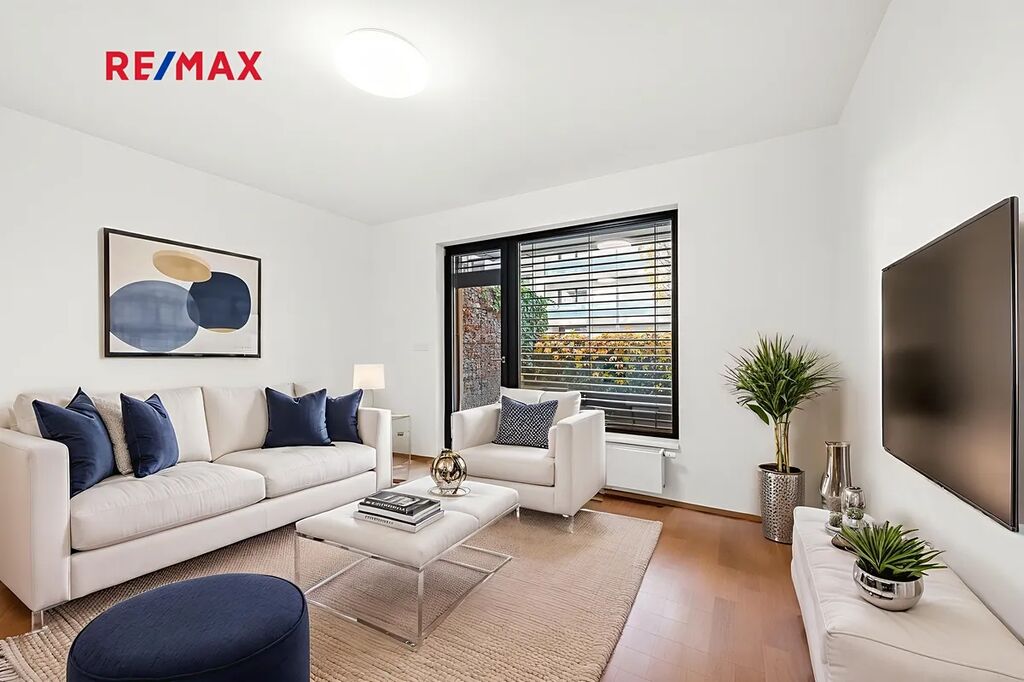 Na prodej nabízíme krásný, světlý a velmi útulný byt o dispozici 2+kk a podlahové ploše 49,1 m² s vlastní zahradou o rozloze 26,5 m² a garážovým stáním. Byt se nachází v přízemí nové rezidenci Waltrovka, dokončené v roce 2019, v žádané lokalitě Prahy 5 – Jinonice.