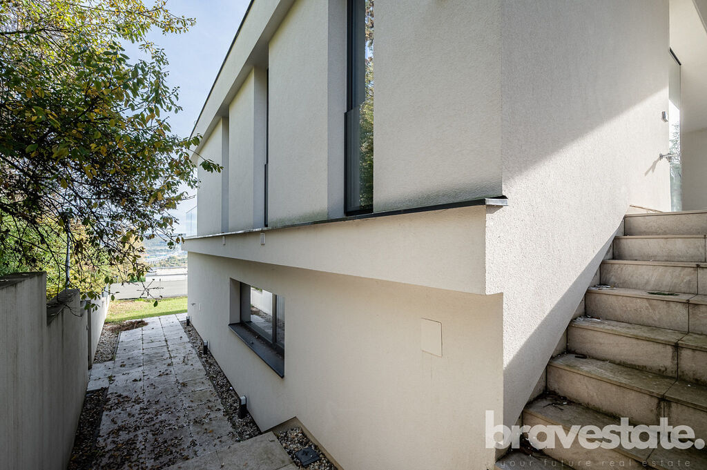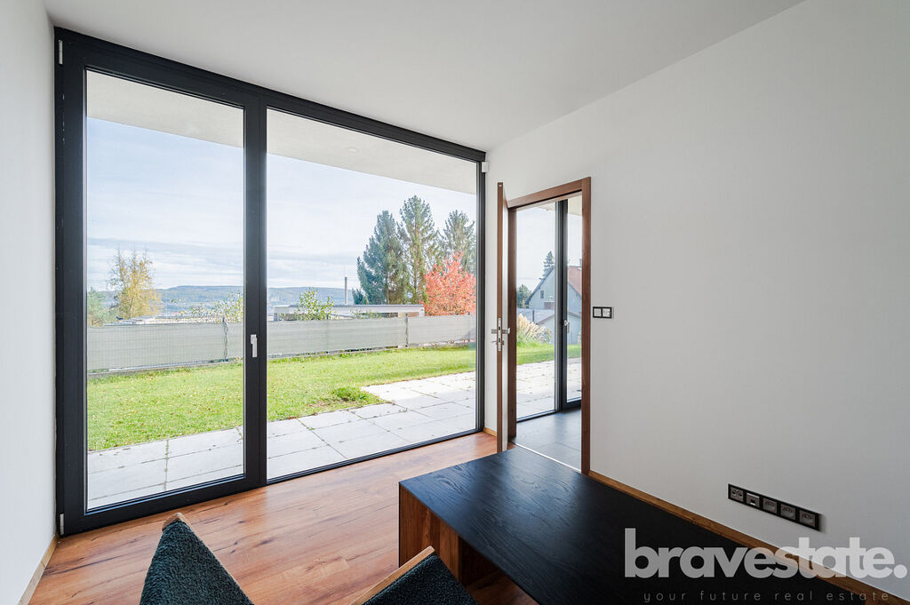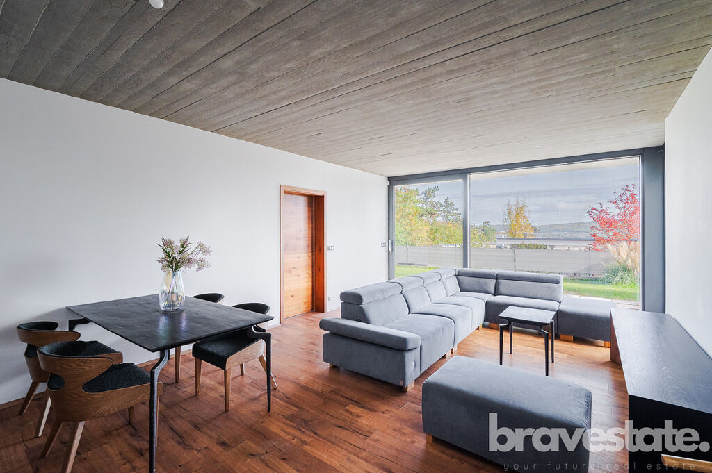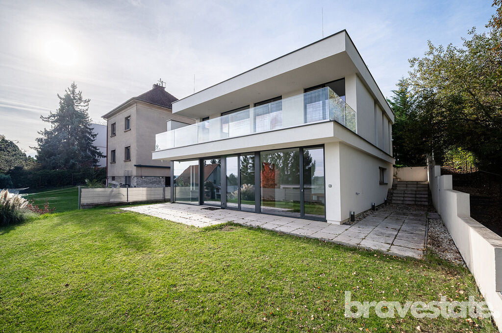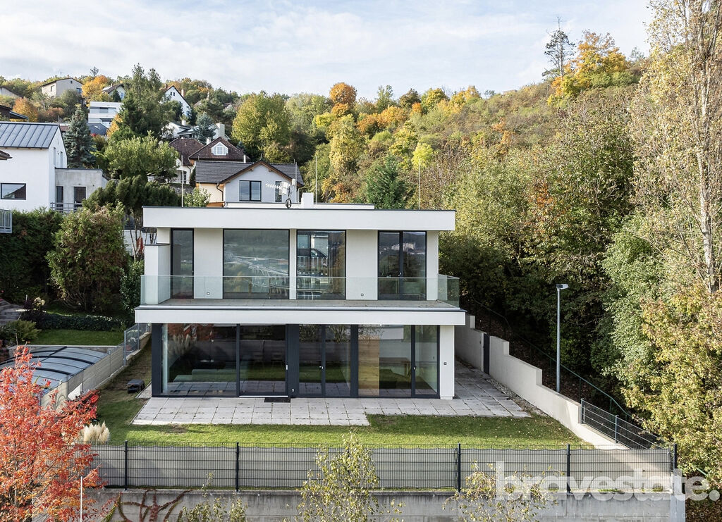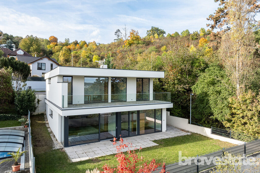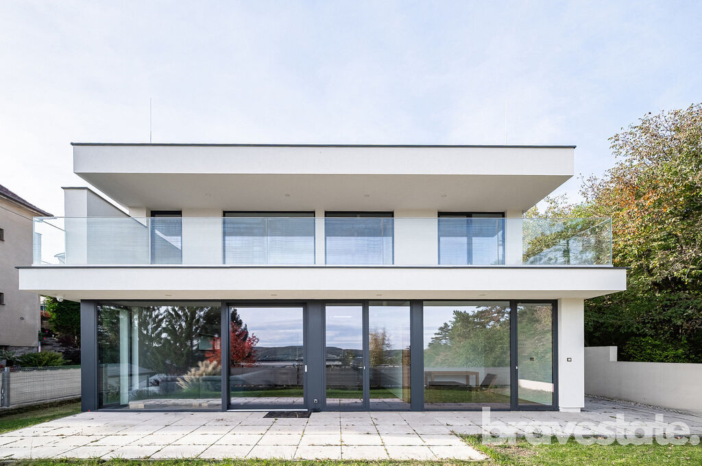Nabízím k prodeji dvoupodlažní moderní vilu o dispozici 5+kk, s plochou střechou, částečně zapuštěnou do svahu v úrovni 1. NP. Dům je zděný, zateplený s vnitřními příčkami z Ytongu. Zastřešení domu je tvořeno plochými střechami a terasou. Okna hliníková s izolačním trojsklem. Teplovodní podlahové vytápění. V místnostech podlahy plovoucí, koupelny, WC keramická dlažba. Vnitřní dveře bezfalcové, lakované, hladké, plné. Vstupní dveře jsou bezpečnostní. Posuvná vjezdová brána z pozinkované oceli. Stěny interiéru jsou omítnuty štukovou omítkou, v exteriéru je použita probarvená silikátová omítka. Příjezdová zpevněná plocha je řešena z betonové skládané dlažby, na terasách je lepená keramická dlažba. Zdrojem tepla je tepelné čerpadlo.