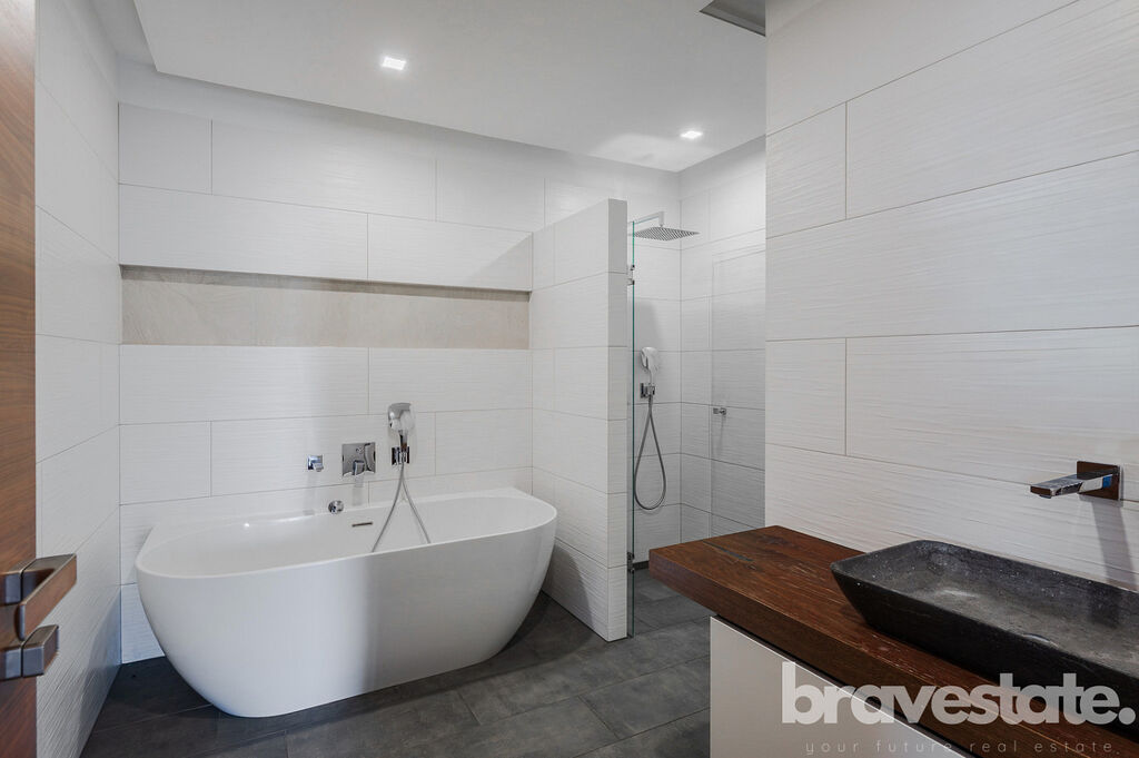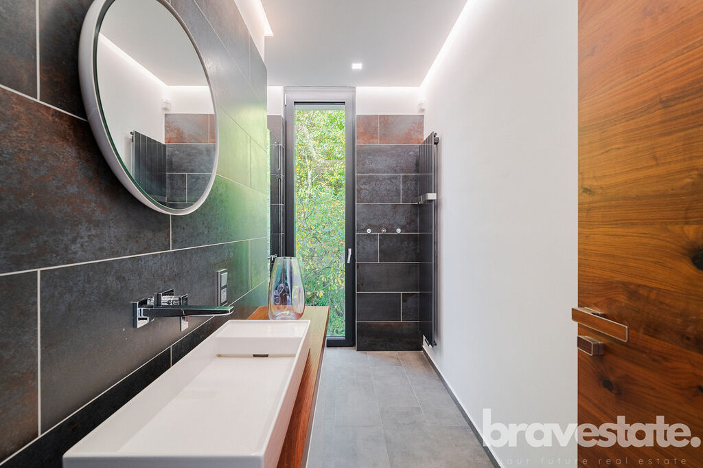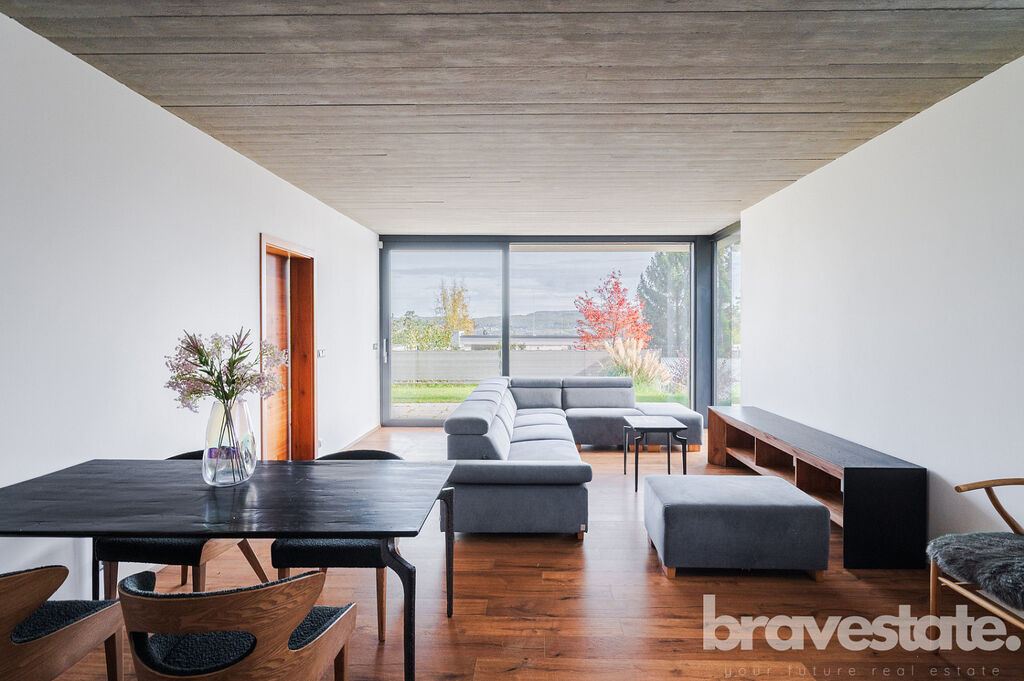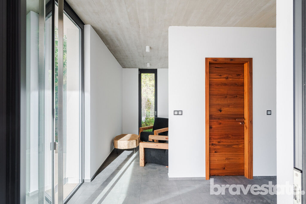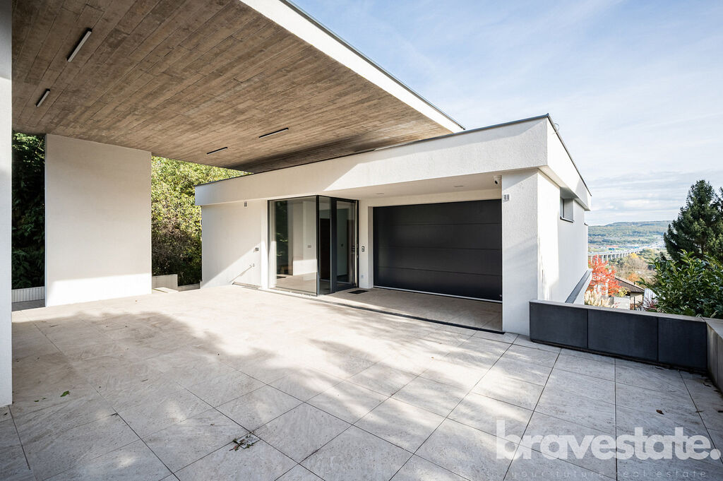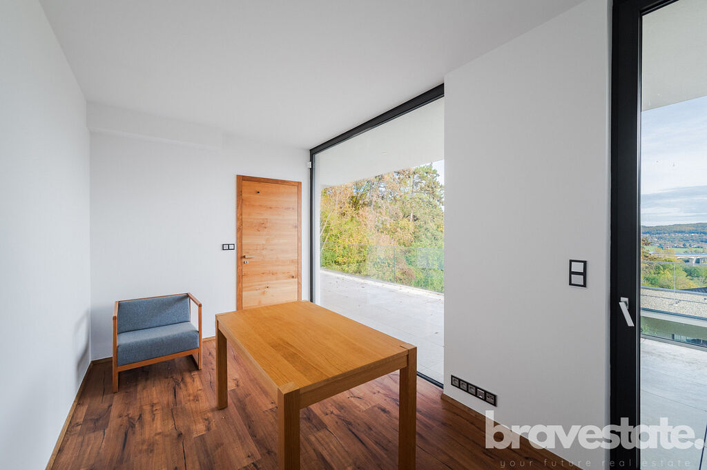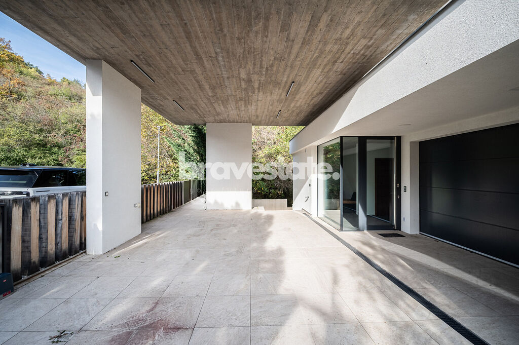 Nabízím k prodeji dvoupodlažní moderní vilu o dispozici 5+kk, s plochou střechou, částečně zapuštěnou do svahu v úrovni 1. NP. Dům je zděný, zateplený s vnitřními příčkami z Ytongu. Zastřešení domu je tvořeno plochými střechami a terasou. Okna hliníková s izolačním trojsklem. Teplovodní podlahové vytápění. V místnostech podlahy plovoucí, koupelny, WC keramická dlažba. Vnitřní dveře bezfalcové, lakované, hladké, plné. Vstupní dveře jsou bezpečnostní. Posuvná vjezdová brána z pozinkované oceli. Stěny interiéru jsou omítnuty štukovou omítkou, v exteriéru je použita probarvená silikátová omítka. Příjezdová zpevněná plocha je řešena z betonové skládané dlažby, na terasách je lepená keramická dlažba. Zdrojem tepla je tepelné čerpadlo.