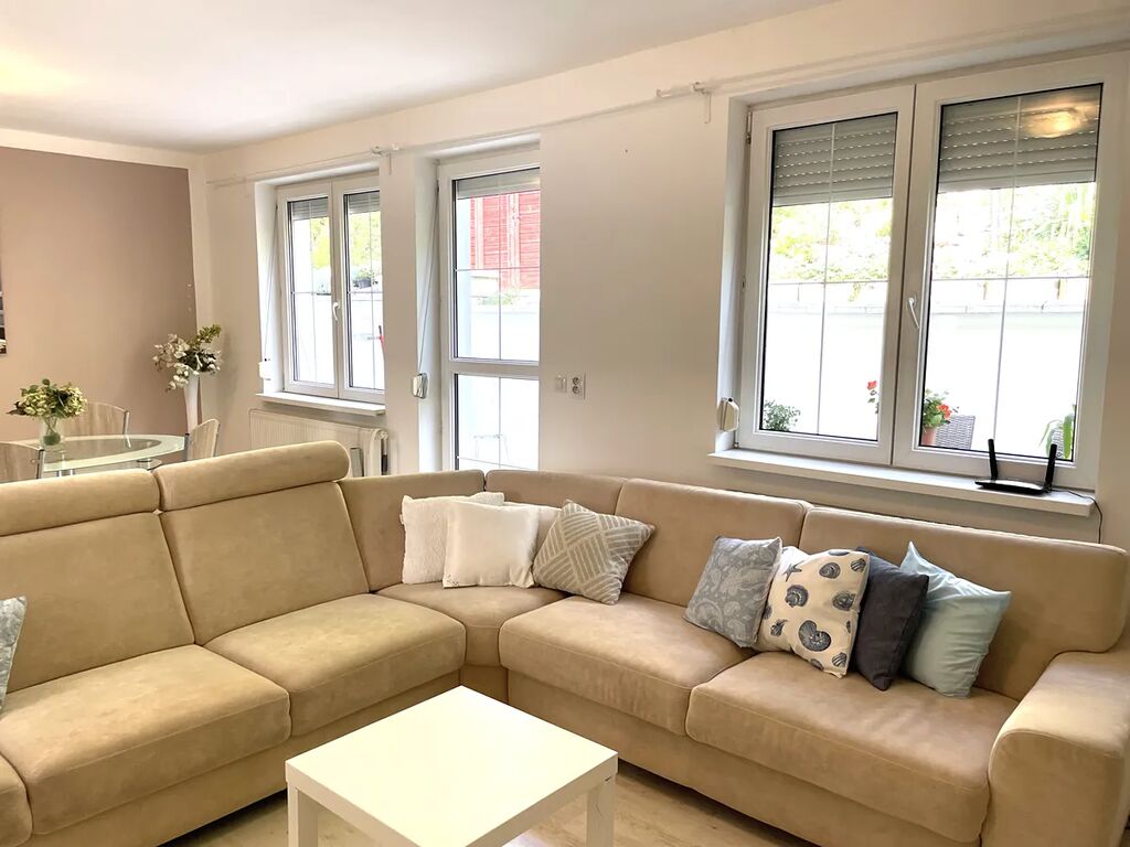K Vltavě 5 minut na kole nebo 15 minut pěšky, dojezd do centra Prahy mimo špičku 15 minut autem.