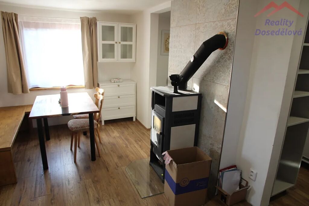 V současné chvíli se ještě dodělává nová kuchyňská linka-instalují dvířka od kuchyňské linky a dodělává se vstupní chodbička. Součástí koupě je i veškeré vybavení chaty, nová krbová kamna i s venkovním bazénem s pískovou filtrací. Nově je i udělána vstupní venkovní terasa 14 m2.