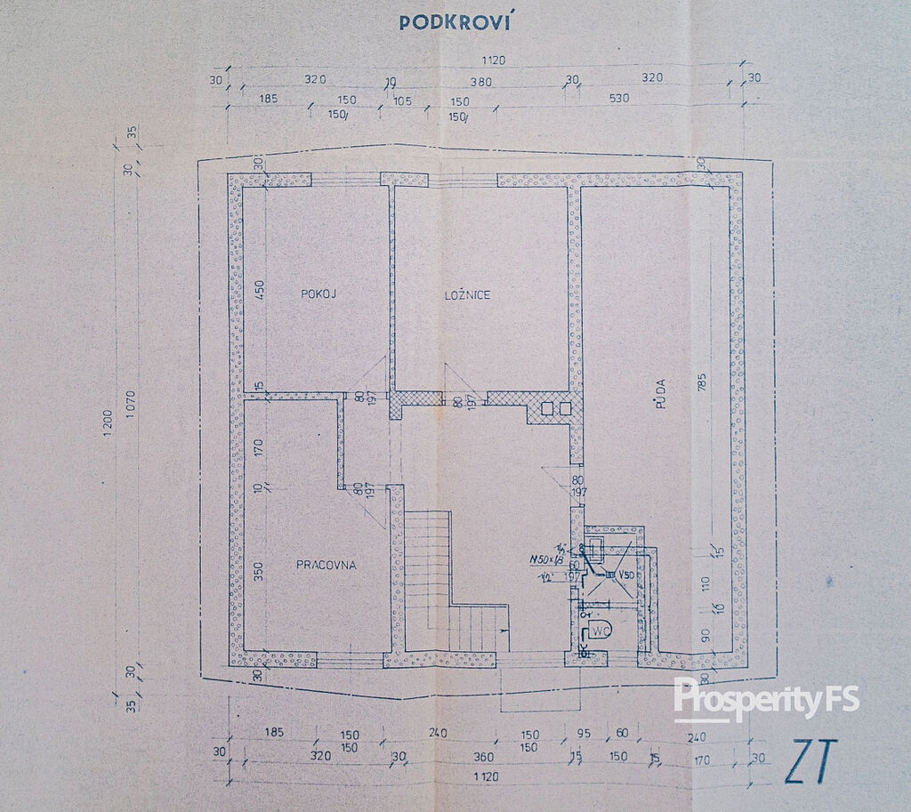 V patře se nachází tři samostatné ložnice, půdní prostor a místnost připravená pro budoucí koupelnu a toaletu. Toto podlaží si tak můžete dokončit přesně podle svých představ a potřeb.