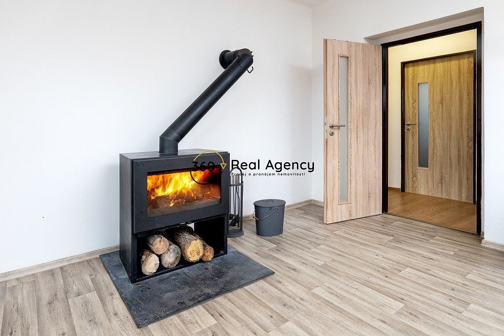 Velkorysé pokoje, kuchyně s jídelnou a obývací pokoj s krbovými kamny – teplo, atmosféra a každodenní pohoda.