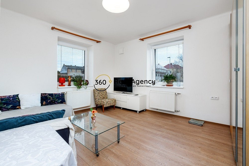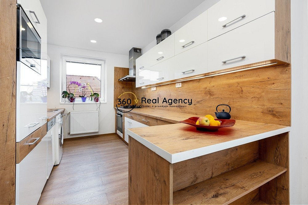 Světlá kuchyně s jídelnou jako srdce domova, oddělený obývací pokoj, tři pokoje pro rodinu či práci, koupelna a samostatná toaleta.