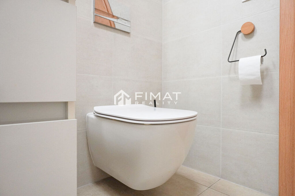Byt se nachází ve 2. podlaží a jeho užitná plocha je 55 m². Sestává ze vstupní chodby, šatny, ložnice, obývacího pokoje s kuchyňským koutem, jehož součástí je moderní kuchyňská linka s vestavěnými spotřebiči (lednice, myčka, varná deska, trouba, digestoř) a koupelny s vanou a toaletou. Dále byt zůstane bez vybavení, nábytek na fotografiích není součástí pronájmu.