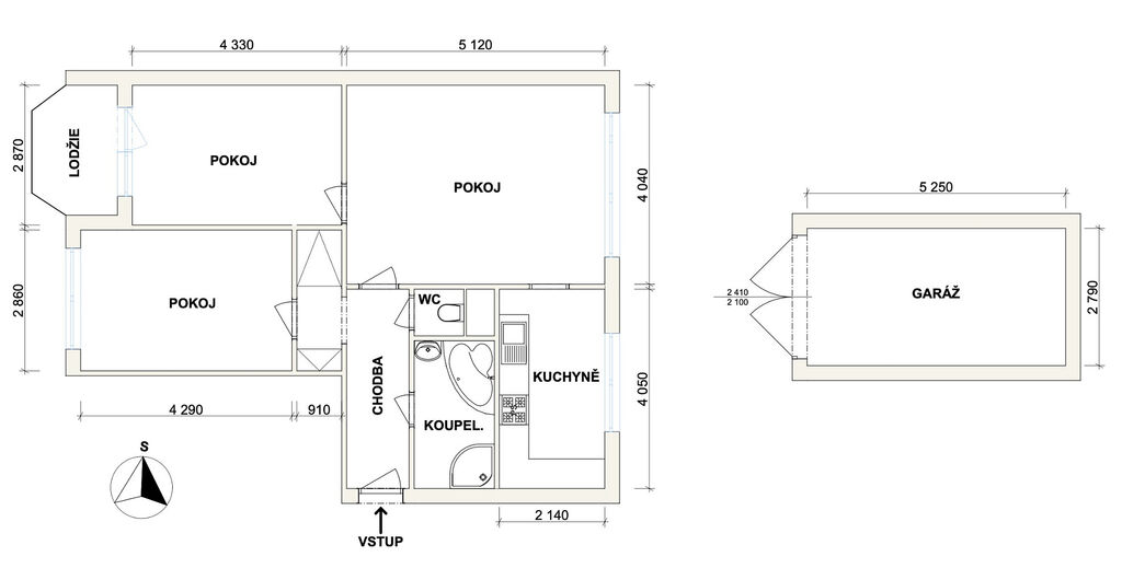 Velkým bonusem je garáž přímo v domě, vybavená elektřinou a podružným elektroměrem.