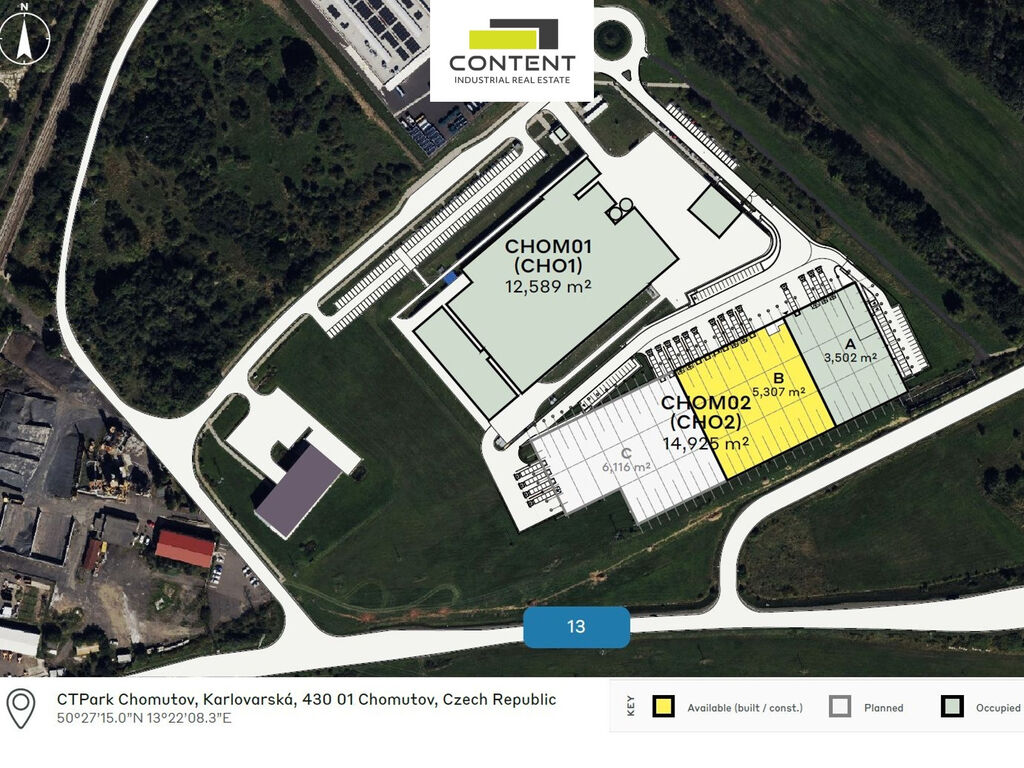 - prostor lze dělit na jednotky od cca 3000 m² (budova CHO2),