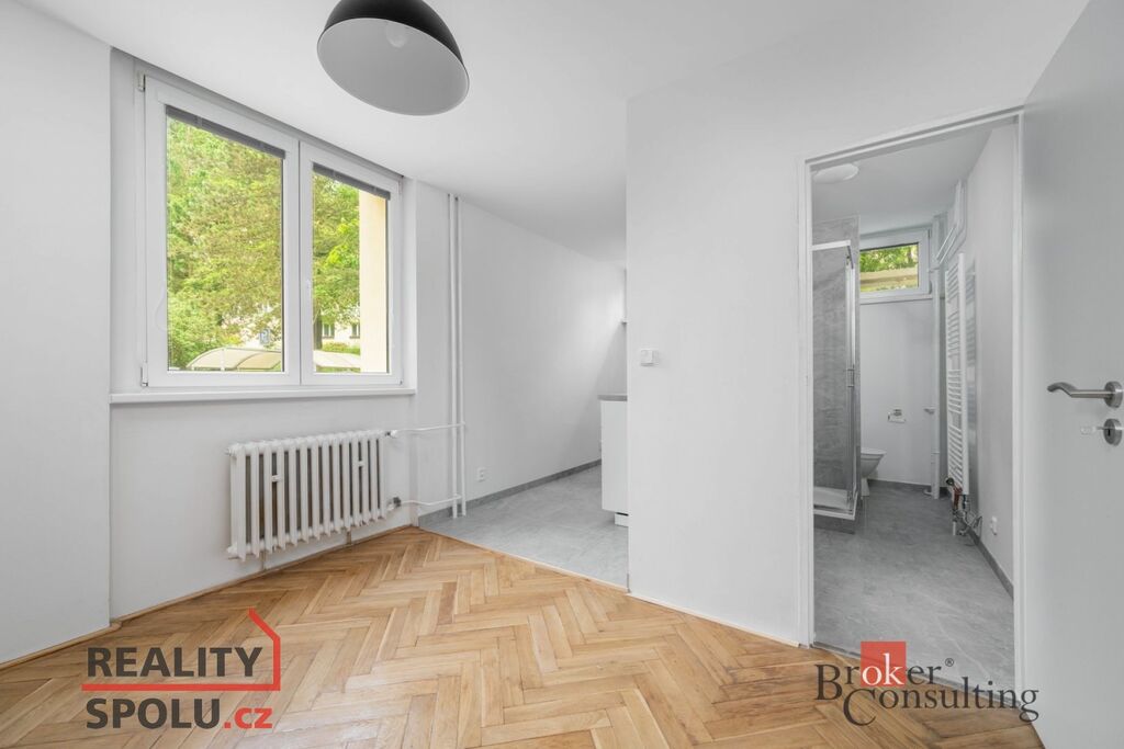 V bytě je nová kuchyňská linka s mikrovlnou a horkovzdušnou troubou, sporák a moderní koupelna, jejíž součástí je WC a sprchový kout.