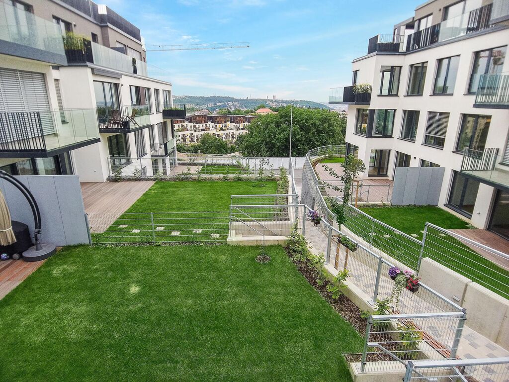 Dispozičně se jedná o velké 3+kk. Prostorově dominuje obývací pokoj s kuchyní na míru s 40 m. Ložnice s vestavěnými skříněmi má 12 m² a další místnost lze využít jako pracovnu nebo dětský pokoj. Samozřejmostí je koupelna s wc a k dispozici je také samostatné wc s komorou. Ve vstupní hale jsou již připraveny vestavěné skříně a velkou radost Vám udělá terasa (20,6 m²). Součástí nájmu je také sklep (10 m²), vlastní parkovací stání v garáži a jedno stání před domem. Za poplatek je možné využít zásuvku pro nabíjení vozidel. I např. pro návštěvu nebude problém zaparkovat na okolních parkovacích zónách.