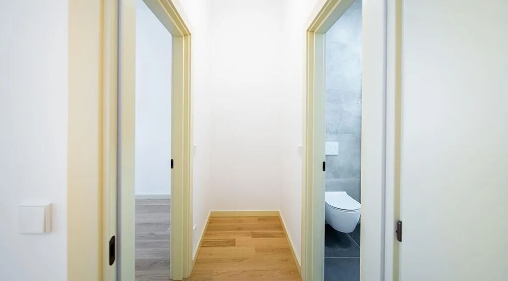 Dispozice prostoru nabízí vstupní chodbu (2,7m2), prostornou místnost (25,4m2) s kuchyňským zázemím zařízeným vestavěnými spotřebiči (lednice, mrazák, varná deska, myčka), předsíň se vstupem do další samostatné místnosti (12,2m2), stylovou koupelnu (3,6m2) se sprchovým koutem, umyvadlem a toaletou.