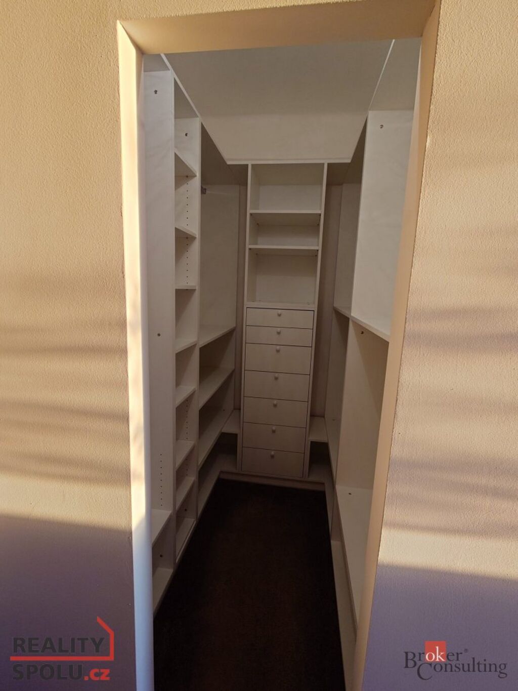 Byt je vybaven moderní kuchyňskou linkou s vestavěnými spotřebiči. Součástí jsou vestavěné skříně a prostorná šatna. Na oknech žaluzie.