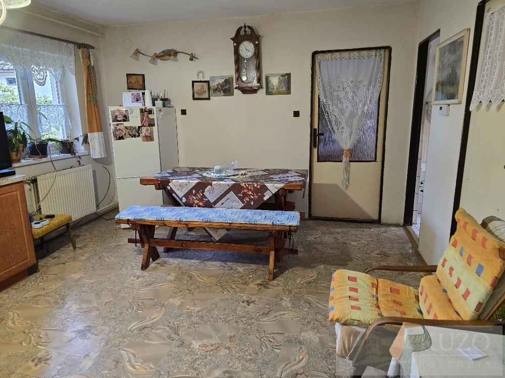 V exkluzivním zastoupení majitele nabízíme k prodeji samostatně stojící rodinný dům s kompletním provozním příslušenstvím a vybavením, vedlejšími stavbami a zahradou v klidné části obce Mutěnín, která leží 11 km od okresního města Domažlice s veřejnou infrastrukturou a kompletní vybaveností. Přízemní objekt rodinného domu s využitým obytným podkrovím o dispozici obytných prostor 4+1 (2+1 přízemí, 2+0 podkroví) s příslušenstvím v obou patrech a kompletním provozním zázemím. RD byl v roce 1990 modernizován, částečně rekonstruován, adaptován do současného stavu a užíván k trvalému bydlení. Je kompletně provozně vybaven, připraven k okamžitému předání, následnému užívání, popřípadě zahájení rekonstrukce objektu dle představ nového vlastníka. PENB třída: „G“ průkaz nezpracován. Rodinný dům stojí na vlastním oploceném pozemku s vedlejšími stavbami kůlna, pergola, dřevník a zahradou s travním porostem a ovocnými stromky a keři a dalším navazujícím pozemkem. Nemovitosti jsou situovány v rovinatém terénu, navazují na příjezdovou zpevněnou asfaltovou komunikaci se zpevněným vjezdem a vstupem na okraji vesnické zástavby. Nabízené nemovitosti jsou vhodné a využitelné k trvalému rodinnému bydlení v okrajové části obce s dostupností základních služeb a infrastruktury (obchod, škola, školka, restaurace) v cca 8 km vzdálené obci Poběžovice, nebo v cca 3 km vzdálené obci Hostouň. Předností nabízených nemovitostí je velikost a dispozice prostor RD, kompletní provozní vybavenost objektu, napojení na inženýrské sítě, možnost okamžitého užívání, velikost navazující zahrady a pozemku, existence vedlejších staveb a lokace nemovitostí v okrajové části obce u rybníku. Dispozice RD: přízemí vstup se schody, veranda, chodba, technická místnost s kotelnou, kuchyně, ložnice, koupelna, s oddělenou toaletou, obývací pokoj s jídelnou, zimní zahrada a pod ní sklep, schodiště, chodbička, 2x ložnice a půdní prostor. Přístup/příjezd z veřejné zpevněné komunikace s chodníkem (vstup + vjezd), elektřina (220/380 V), napojeno na veřejný vodovod, na septik, napojeno na rozvod plynu a telekomunikační rozvody. Vytápění: centrální plynové + centrální palivové (kotel na dřevo). Zastavěná plocha a nádvoří: 99 m2, zahrada: 220 m2, ostatní plocha: 65 m2, pozemků celkem: 384 m2.