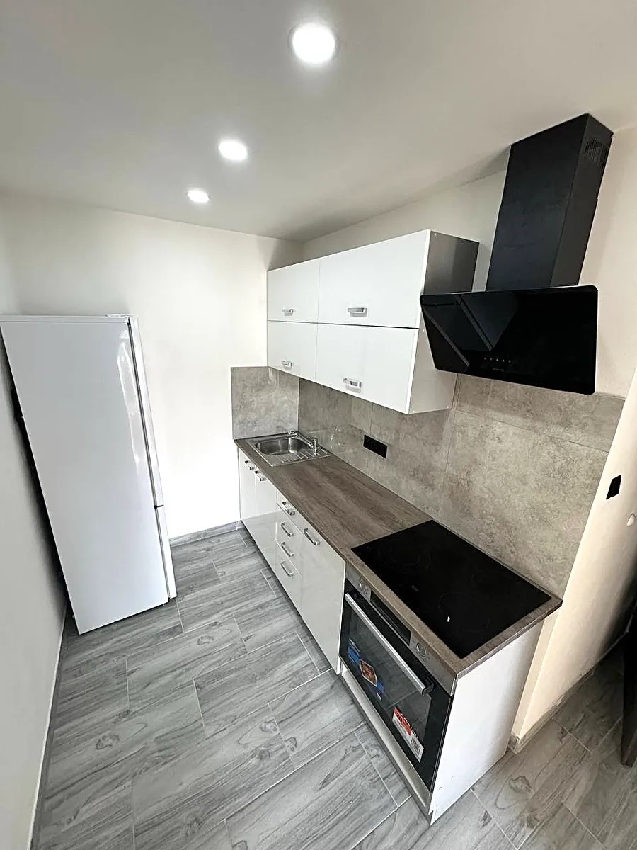 Byt je zařízený. Kuchyň je vybavená kuchyňskou linkou a elektrospotřebiči.