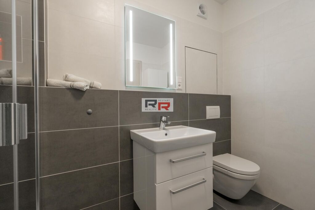 Pronájem nadstandardního bytu 1+KK o velikosti 41,2m2 s terasou o velikosti 9,01m2 v Olomouci - ul. Slavonínská. Jedná se o byt ve 4.NP cihlové novostavby, kolaudované v r.2019 s bezbariérovým přístupem. Byt se pronajímá kompletně zařízen: kuchyń. linka na míru s vestavěnými spotřebiči AEG , myčkou Bosch, lednicí, pračkou a sušičkou AEG, manželskou postelí zn. Blanař včetně roštu, matrací a peřin, obývací stěnou na míru včetně tv Samsung, vestavěnou skříní vč. botníkové stěny s LED osvětlením, barovými židlemi, pohovkou, koupelnovým nábytkem, garnýžemi vč. záclon, nádobím atd. V bytě je podlahové vytápění a dále je součástí vybavení i klimatizační jednotka. Orientace bytu je na jižní světovou stranu s výhledem na rybník Hamrys. K bytu lze pronajmout garážové stání přímo v domě za cenu 1.500,- Kč/měsíc. Po dohodě s majitelem je pak možné využít samostatný zděný sklep o velikosti 2,09m2 v suterénu domu.