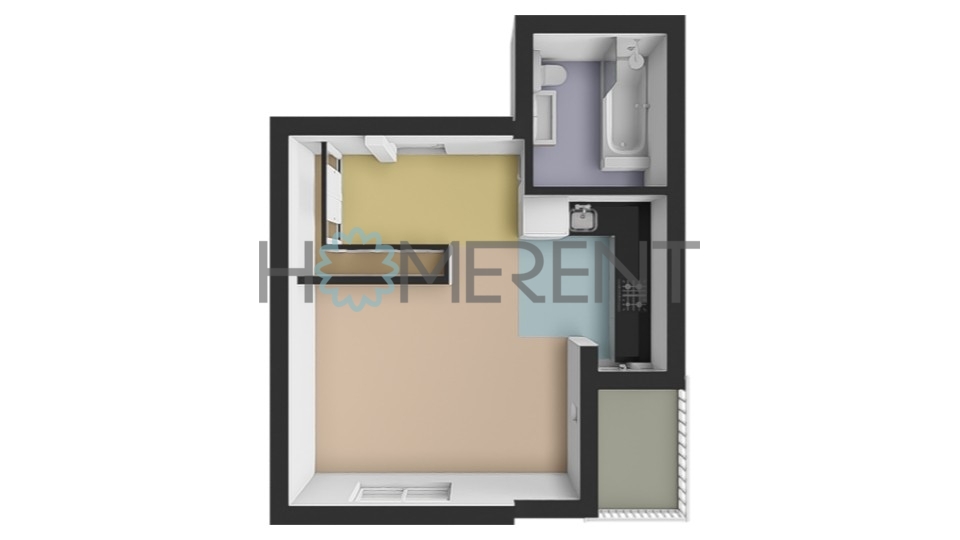 Nabízíme k pronájmu útulný a stylově zařízený byt 1+kk o velikosti 40 m² s balkónkem (1,9 m²), který se nachází v 1. patře činžovního domu s výhledem do klidného vnitrobloku.