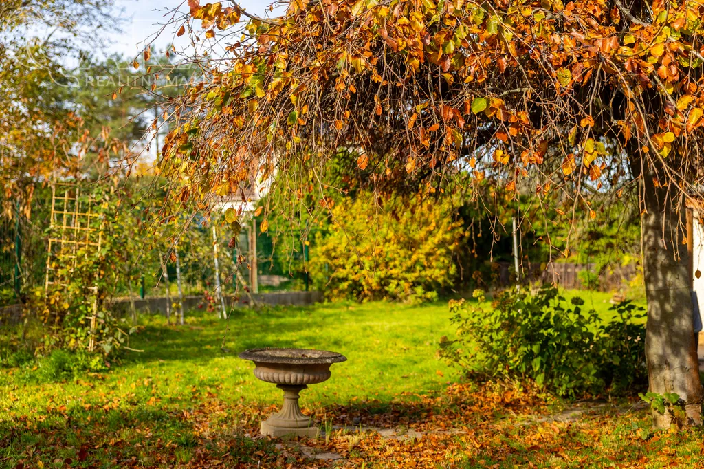Nemovitost disponuje zkolaudovanou garáží o ploše 50 m² a rozlehlou zahradou o výměře 1114 m², která poskytuje naprosté soukromí a prostor pro relaxaci.