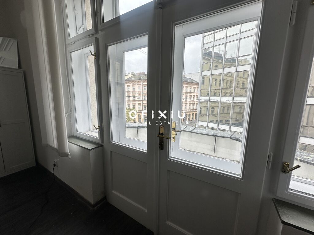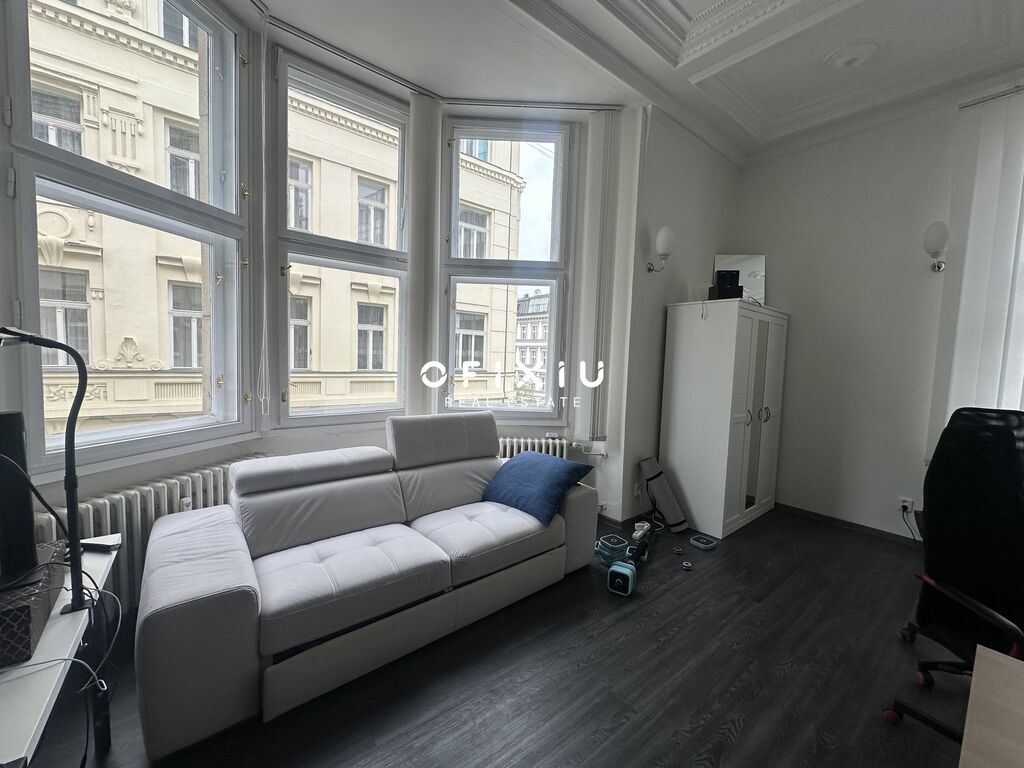 Kancelář tvoří jedna velká, světlá místnost s vysokými stropy a velkými okny, která zajišťují dostatek denního světla. Součástí prostoru je menší balkón s výhledem do ulice a umyvadlo s přívodem vody, které může sloužit pro zázemí nebo malý kuchyňský kout. Prostor je klimatizovaný.