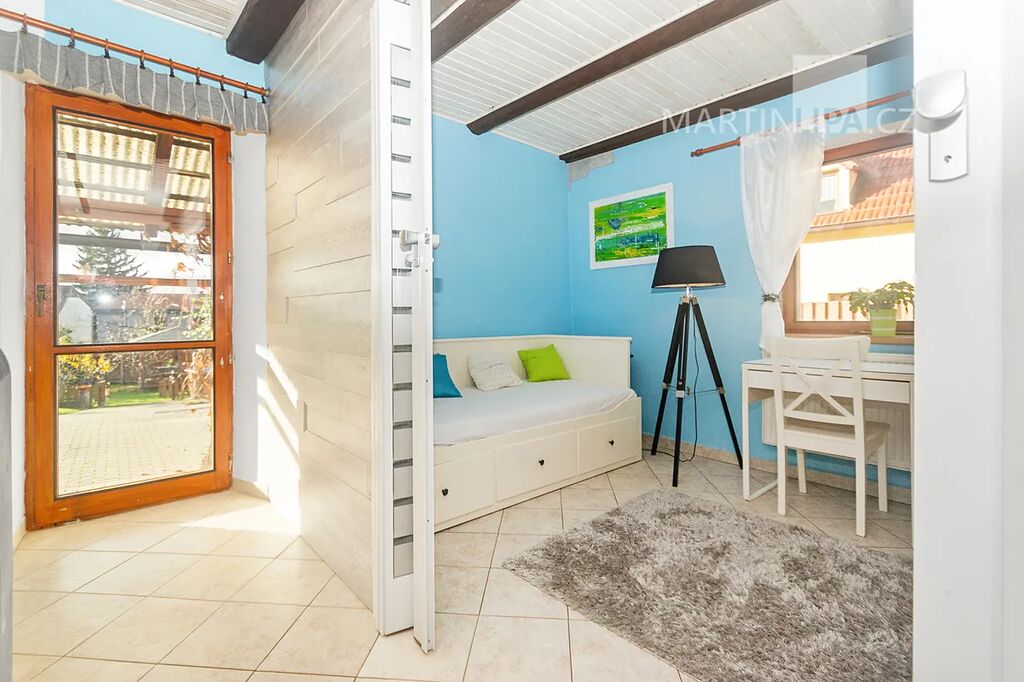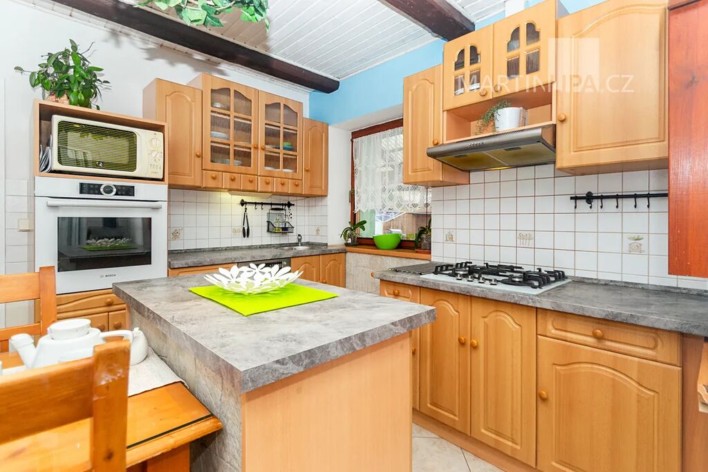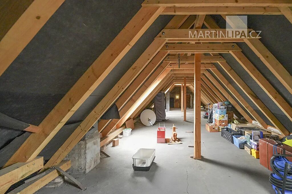 Dům je starší poctivý kus. Plně obyvatelný, místy s trochu unaveným make-upem, ale přitom upřímně připravený na další kapitolu. Rozhodně by vás neměl nijak překvapovat – a když, tak spíš pozitivně. V roce 2016 dostal novou střechu včetně krovu s krytinou Bramac, topí plynovým kotlem Vaillant (2002) a část oken se měnila v roce 2003. Dispozice 4+1 dává smysl v běžném provozu a pokud by vám to bylo málo, je zde velkrysá půda, přímo stvořená pro vestavbu dalších pokojů. Minimálně dva nebo tři by se tam v pohodě vešly. Střešní okna jsou již nainstalována a na vás by zůstalo jen to vymyslet a dotvořit.