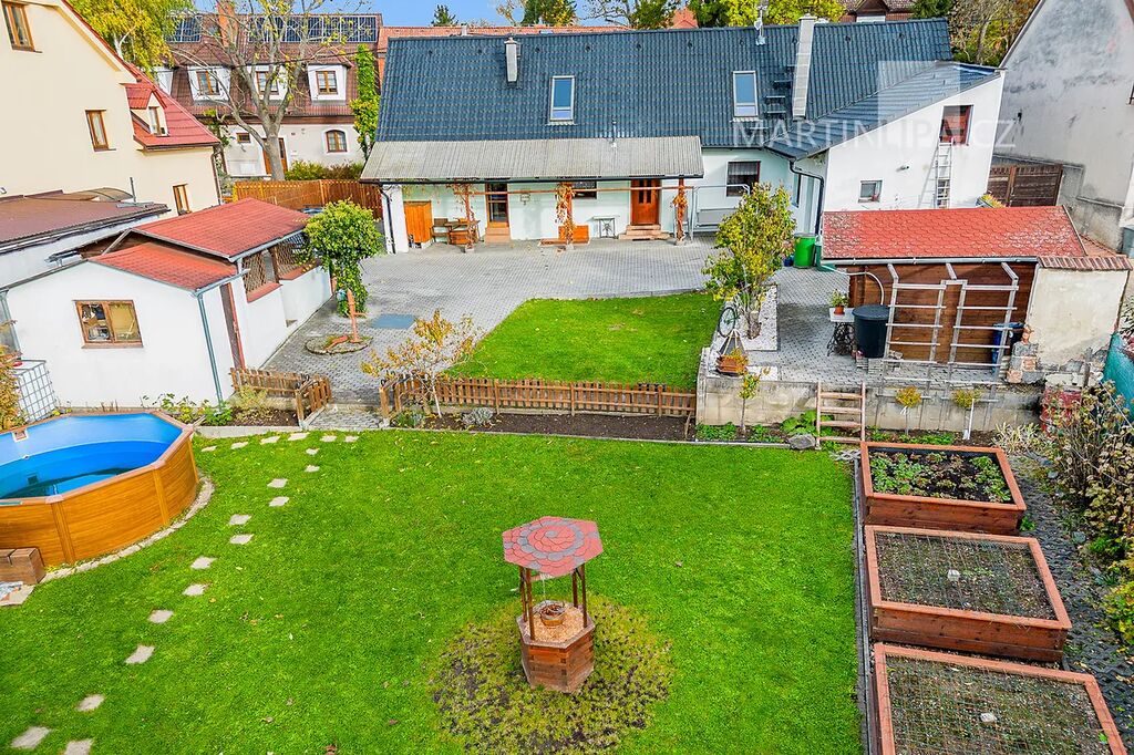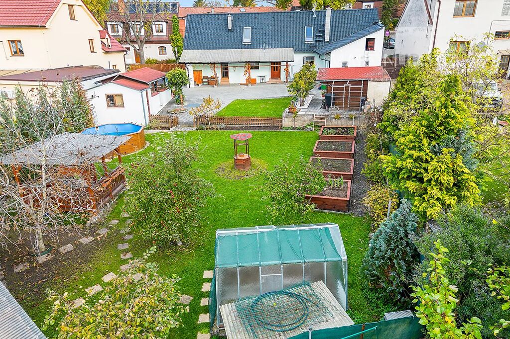 Zahrada, která vám vezme dech a už nepustí. Když projdete bránou z ulice, svět se jaksi ztiší. Život na tomto místě budete milovat kvůli zahradě, čerstvému vzduchu, šepotu vzrostlých ovocných stromů, ranní kávě v altánu nebo grilovačce tamtéž. Kutily nadchne zděná dílna, na kterou navazuje zastřešené parkovací místo, sloužící i jako zázemí pro dřevo do krbu. Kdo se rád vrtá v záhoncích, najde jich tu hned několik a to včetně hezkého dřevěného zahradního domku, do kterého uklidíte nejen zahradní nářadí. A v létě se můžete vydovádět v bazénu.