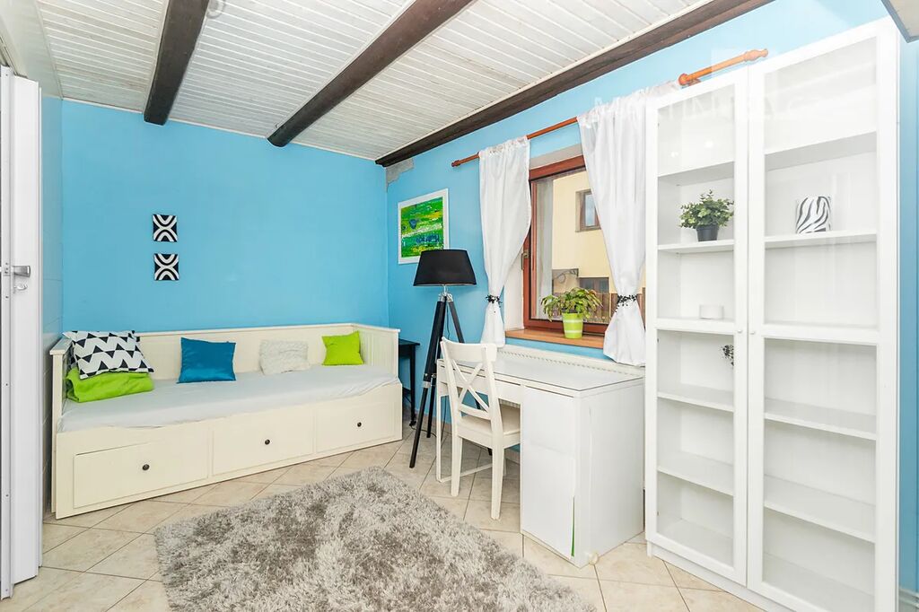 V současném obývacím pokoji je krásný krb, který umí dobře načatý den protáhnout o večer v útulné a romantické atmosféře. Zatímco léto budete asi trávit v altánu, v zimě můžete koukat do plamenů uvnitř.