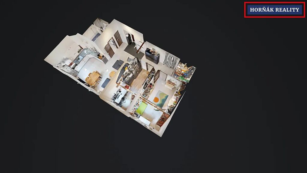 Byt zaujme nejen svými vysokými stropy (4,5 m), díky nimž působí velmi vzdušně a prostorně. V obou dětských pokojích je pak velmi prakticky vytvořeno spací patro. Kuchyňský kout zcela volně a přirozeně navazuje na prostornou obývací část, odkud je přístup také do prostorné koupelny a oddělené toalety.