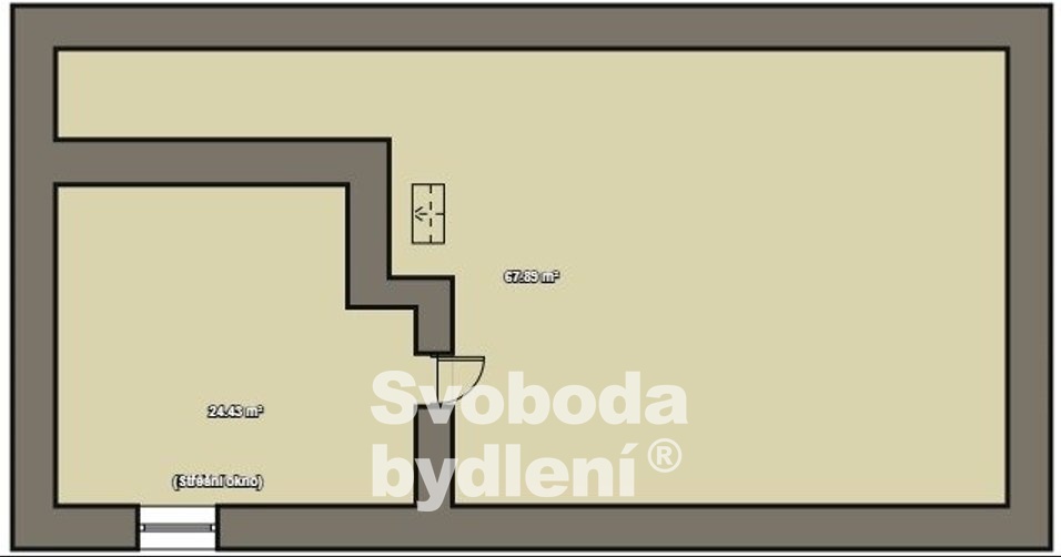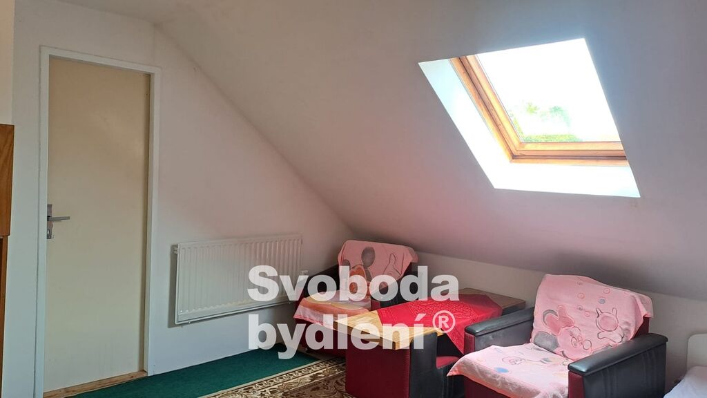 - Dispozice domu: 2+kk (kuchyň s obývákem, ložnice v podkroví)