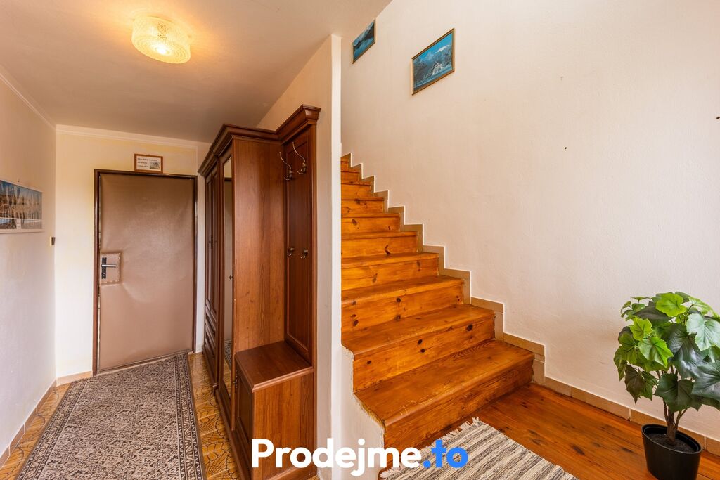 V patře se nachází druhá jednotka 4+1 o výměře 96 m2 – kuchyň, obývací pokoj, ložnice, dva pokoje, koupelna, samostatné WC a dva prostorné balkony s výhledem do okolí.