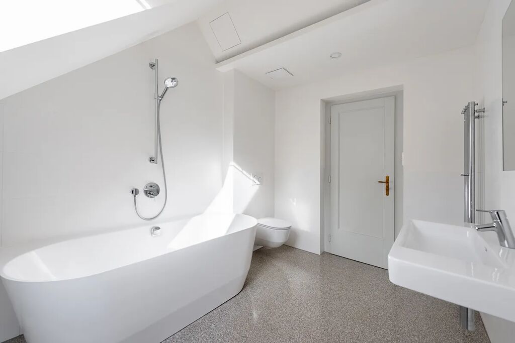 Přestože se byt nachází v podkroví, jeho interiér působí překvapivě civilně a komfortně. Architektonická práce s prostorem potlačuje obvyklé limity podkrovního bydlení – převládají rovné linie, plnohodnotná výška stropů a klasická okenní otvorová konstrukce. Byt je nově dokončen po kolaudaci a připraven k citlivému dotažení v individuálním interiérovém stylu nového majitele.