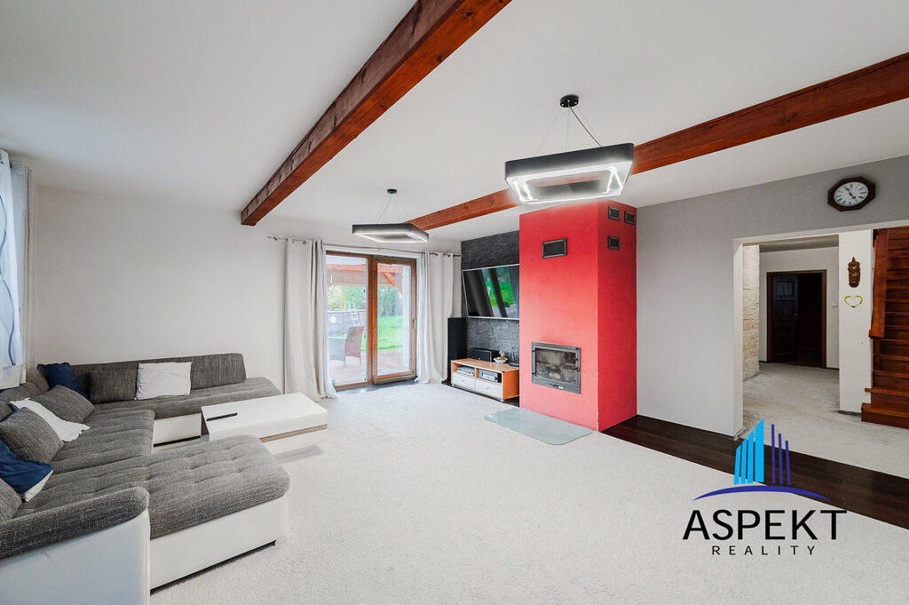 Dům se skládá z dvou podlaží. V přízemí se nachází prostorný obývací pokoj o rozloze cca 36 m², pracovna, koupelna, chodba, jídelna, velmi prostorná kuchyň, úklidová místnost pod schody a technická místnost se spíží. V prvním patře jsou umístěny tři pokoje, ložnice, šatní místnost a druhá koupelna.