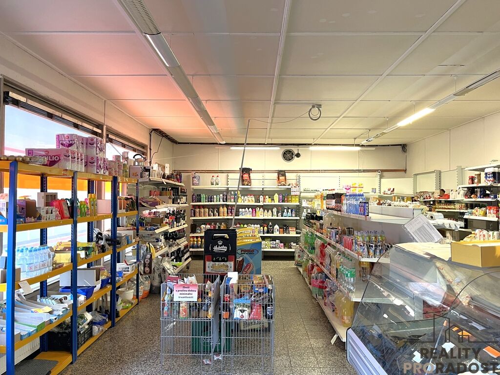 Prostor má dvě hlavní místnosti, které lze také propojit jako jednu velkou prodejnu s dvěma sklady. Dále jsou zde toalety. Vytápění je ústřední plynové, objekt je střežen alarmem. Obec vyřídí dotaci, aby Vás provoz stál naprosté minimum viz prohlídka, na které Vám řeknu víc, obec také velmi ráda umožní umístění poutačů. Podmínkou je, že se zde musí prodávat běžné potraviny, aby měli jak místní, tak projíždějící, kde nakupovat.