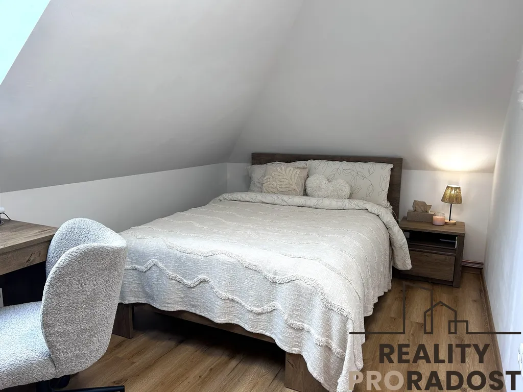 Rozsáhlá rekonstrukce v letech 2024–2025 – nové obytné podkroví, kuchyňská linka na míru, elektroinstalace, rozvody, podlahy, sanita, střešní okna, nový plynový kotel i topný systém