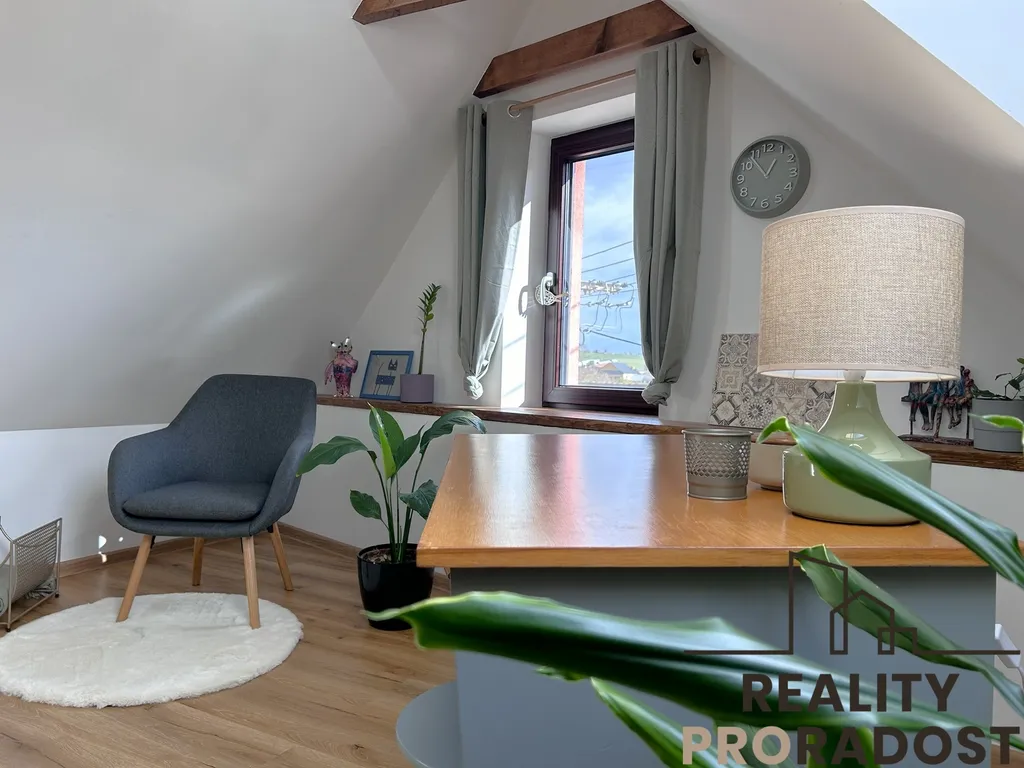 Kompletní a vkusná rekonstrukce – nové podlahy, elektroinstalace, rozvody, kuchyňská linka na míru, střešní okna, kvalitní sanita, nový plynový kotel i topný systém. Příjemný dvorek s posezením a menší zahrádkou – ideální na ranní kávu, večerní víno i dětské radovánky. Garáž, sklad i venkovní zázemí – všechno, co potřebujete mít po ruce, ale ne na očích. Obytná plocha cca 160 m², dispozičně promyšlených do posledního metru. Kvalitní standard bez dalších nutných investic – prostě hotovo a připraveno.