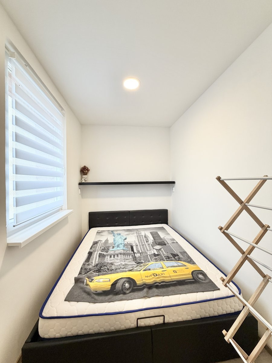 Byt se nabízí plně vybavený. Kuchyně disponuje lednicí, myčkou, elektrickou troubou, varnou deskou, mikrovlnnou troubou a digestoří. Obývací část je zařízena pohovkou, konferenčním stolem, jídelním stolem a židlemi. Dále se v místnosti nachází velká vestavěná skříň, kde je spousta úložného prostoru. Součástí ložnice je postel a věšák. V koupelně je sprchový kout, umyvadlo, toaleta, topný žebříček a pračka se sušičkou.