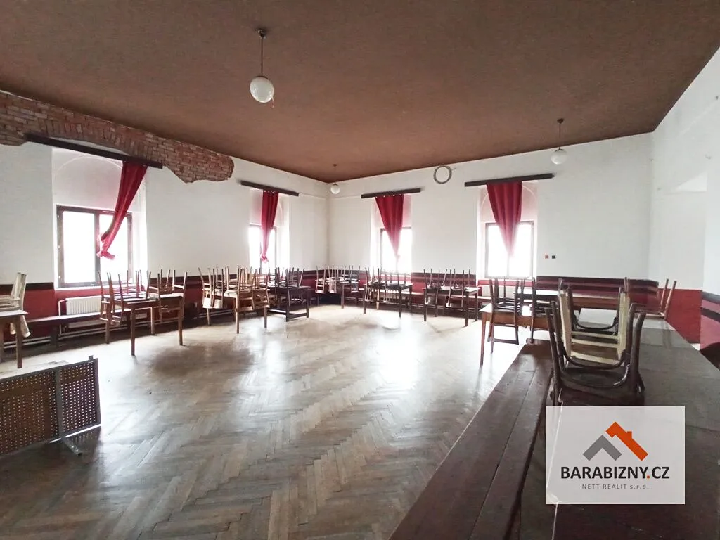 Prodej prostorného domu, vhodného k přestavbě na bytový dům nebo na prodejnu potravin s vlastními sklady, umístěného v centrální části městyse Žireč, která spadá pod město Dvůr Králové nad Labem. Aktuálně se dům využívá jako restaurace se sálem a správcovským bytem. Rekonstrukce domu probíhala od roku 2014: nové sociální zařízení restaurace; částečně nové rozvody topení, topná tělesa, rozvody vody a odpadů; dlažby; nově vyvložkované dva komíny – nerez; nové napojení na kanalizaci; příprava na vybudování nové kuchyně restaurace. Kapacita míst k sezení: restaurace – 30 míst; sál – 120 míst. Jedná se původní stavbu postavenou v roce 1825, s pískovcovými základy. Dominantou domu jsou pískovcové zdi. Zaveden vodovod + možné využití studny jako zdroj užitkové studny (5,6m hluboká s vodním sloupcem 1,8m), el.energie 230/400V, odpady svedeny do kanalizace. Ústřední vytápění zajišťuje plynový kotel nebo možno vytápět lokálně kamny na dřevo. Dále proběhla příprava na ústřední vytápění domu kotlem Opop na tuhá paliva. Dispozice: 1.NP – přední a zadní vchod, chodba, restaurace s výčepem, kuchyně, 3x sociální zařízení (dámy, páni, personál), správcovský byt o dvou pokojích, technická místnost, schodiště; 2.NP – sál s výčepem, technická místnost, 2x sociální zařízení (ve výstavbě), prostorná půda vhodná pro výstavbu podkrovního bytu. Dům je částečně podsklepen. K domu náleží pozemek o výměře 971m2, z toho 284m2 činí zastavěná plocha. Část pozemku o výměře 597m2 je dle územního plánu zahrnutá v plochách pro výstavbu – venkovská smíšená obytná – aktuálně využíváno jako parkovací plocha pro hosty. Vzhledem k nově budované cyklostezce se jedná o strategicky zajímavou polohu pro cykloturistiku. Výhodou je vlastní parkoviště. PENB G. Doporučujeme prohlídku.