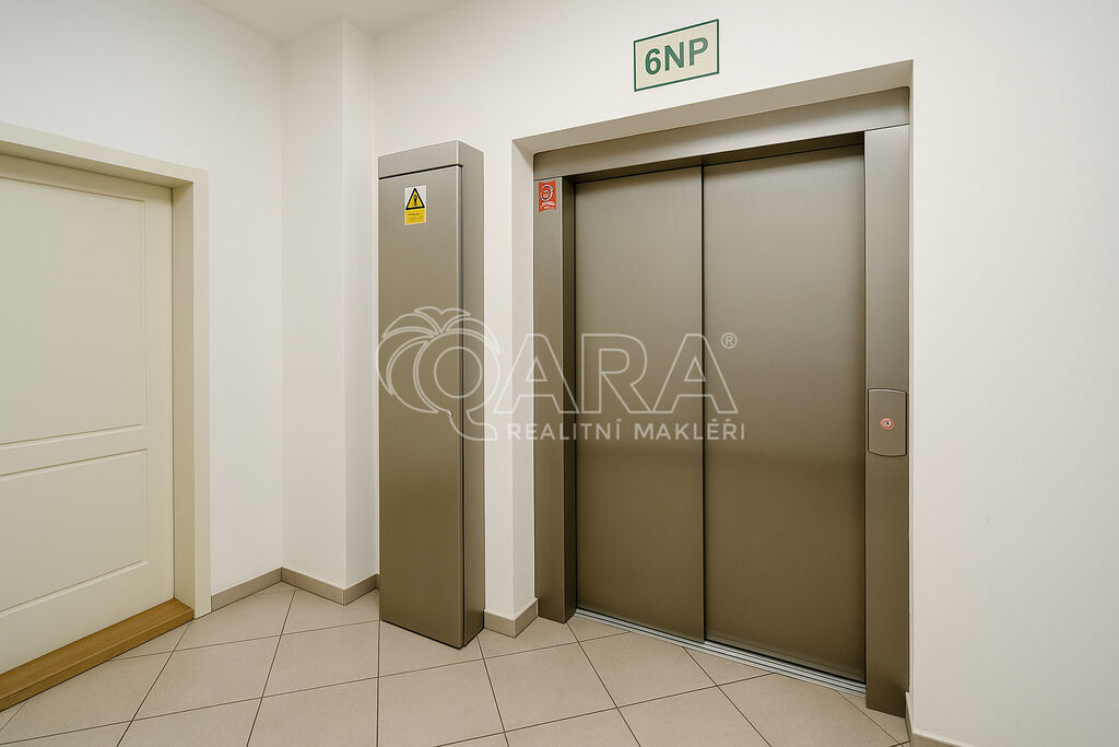 Jednotka se nachází v 6. NP a na patře jsou pouze jedni sousedé. Vstupní chodba s úložnými prostory v podobě posuvné skříně. Obývací pokoj s plně vybaveným kuchyňským koutem a vstupem na terasu. Sedačka, venkovní posezení, jídelní stůl se židlemi součástí vybavení.