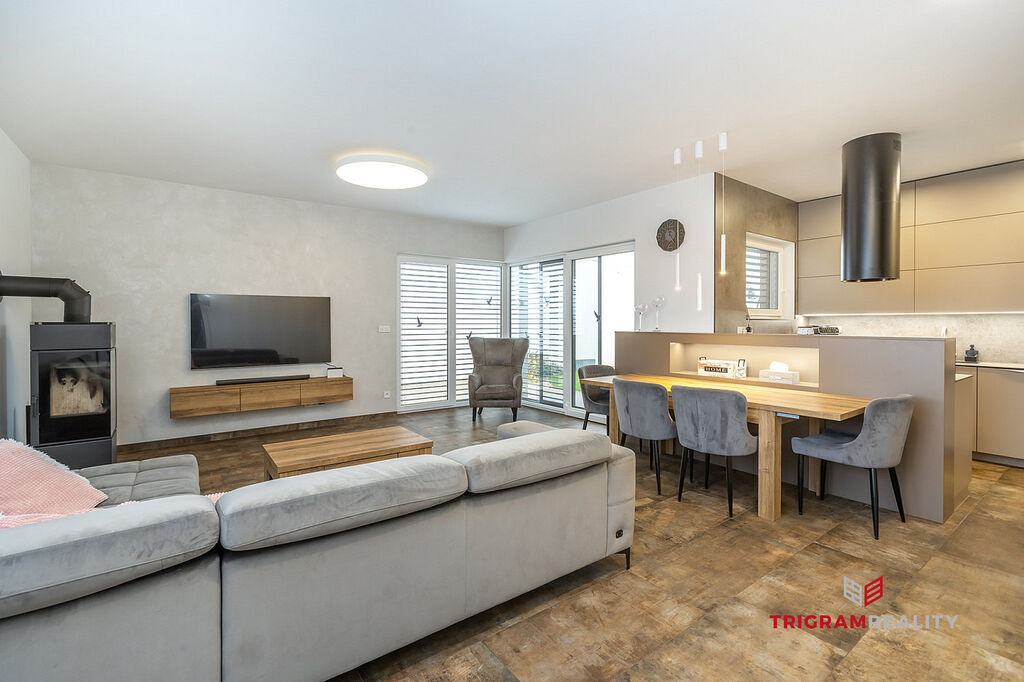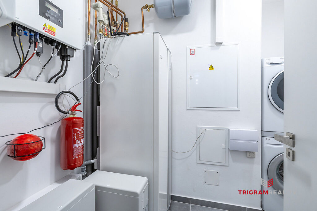 • Energetická efektivita: Dům je vybaven fotovoltaickým systémem a tepelným čerpadlem NIBE, což zajišťuje velmi nízké provozní náklady a ekologický způsob bydlení.