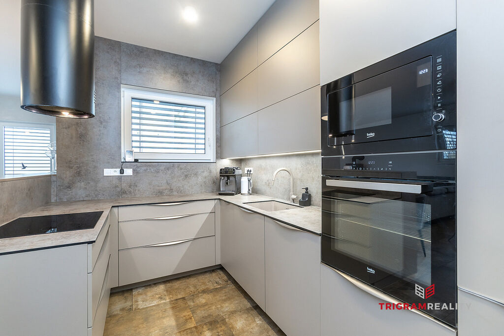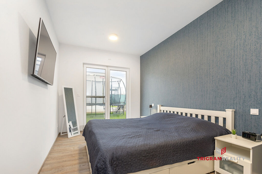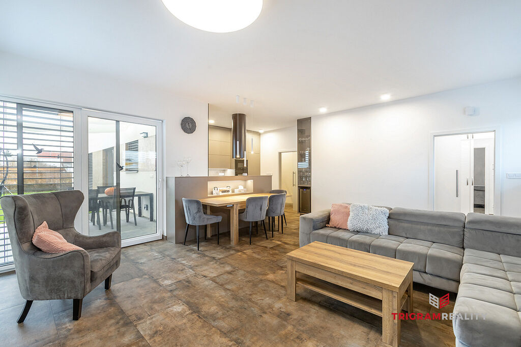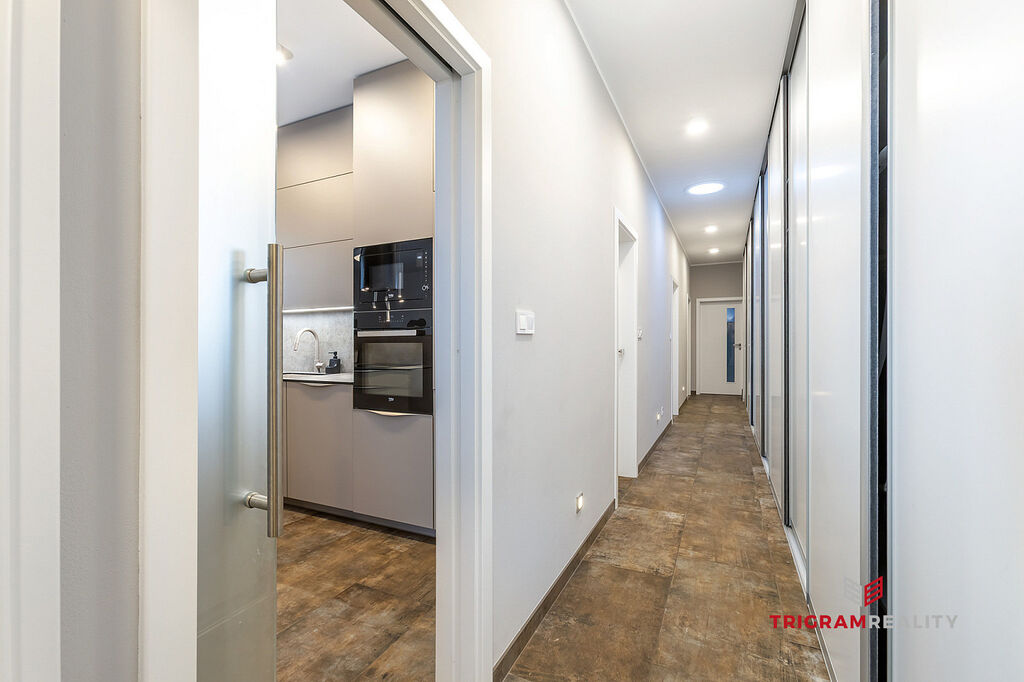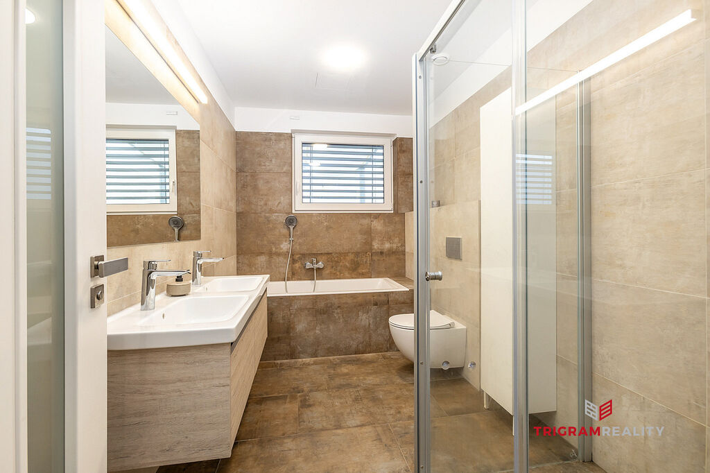 • Nadstandardní vybavení: Bezpečnostní systém Jablotron, elektrické venkovní žaluzie, sítě do oken, zastřešená terasa, kvalitní vinylové podlahy, obklady, dlažba, dveře Sapelli, kuchyň na míru, dostatek úložného prostoru – vestavěné skříně na míru, moderní koupelna se sprchovým koutem i vanou a krbová kamna