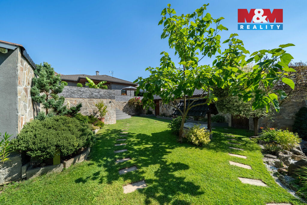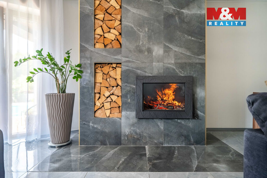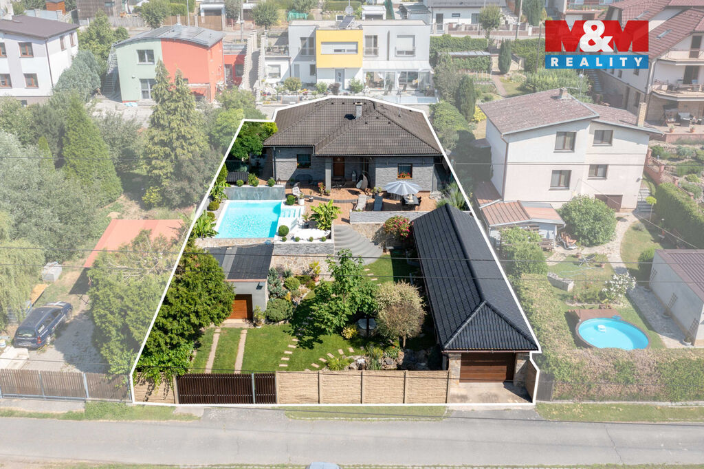Nabízíme k prodeji výjimečný rodinný dům o dispozici 3 kk, který vyniká vysokým standardem provedení a promyšleným řešením pro komfortní bydlení. Nachází se v klidné části, kde máte absolutní klid a soukromí, zároveň však veškerou občanskou vybavenost doslova na dosah. V domě je prostorný obývací pokoj s krbem propojený s kuchyní a jídelní částí, ložnice, pokoj, velká koupelna s vanou a sprchovým koutem, samostatné WC. Přímý vstup z domu na velkou terasu nabízí krásný výhled do okrasné zahrady a okolí, je ideální pro letní posezení či rodinné grilování. Dominantou celé zahrady je nádherný bazén zapuštěný do země, který vám umožní osvěžení v horkých dnech a promění váš domov v soukromou oázu. Na pozemku o celkové výměře 722 m2 jsou 2 garáže, které nabízí dostatek úložného prostoru. Dům je napojen na veřejnou kanalizaci a zdroj vody je z vlastní studny, vytápění elektrokotlem. Přijďte se přesvědčit, že může existovat domov, který spojuje přírodu, prostor a styl.