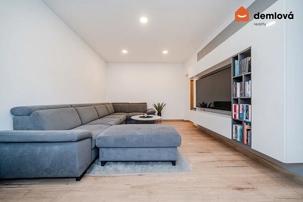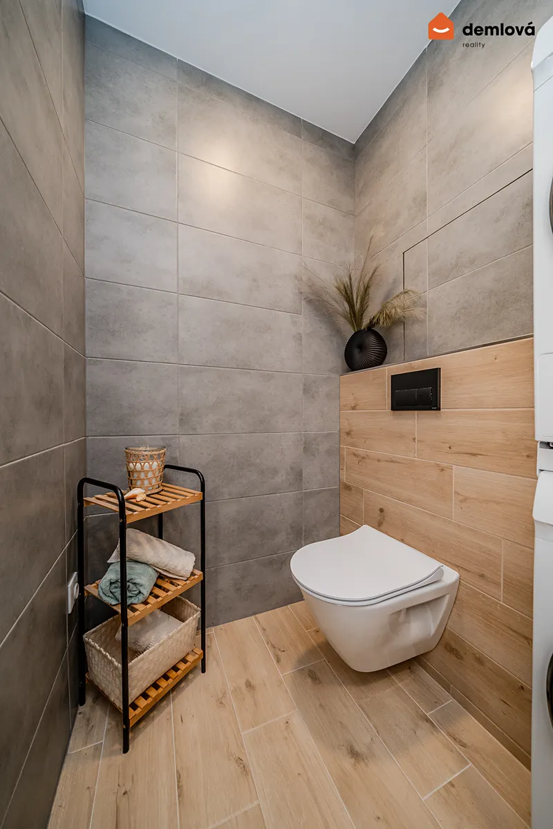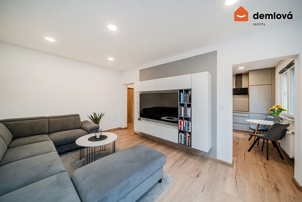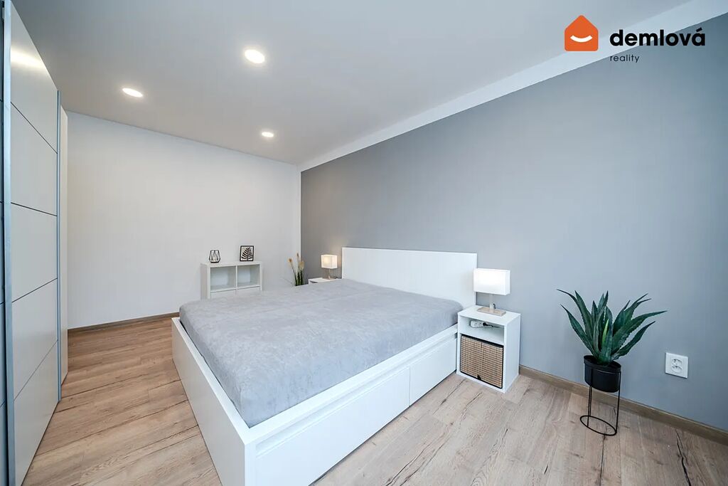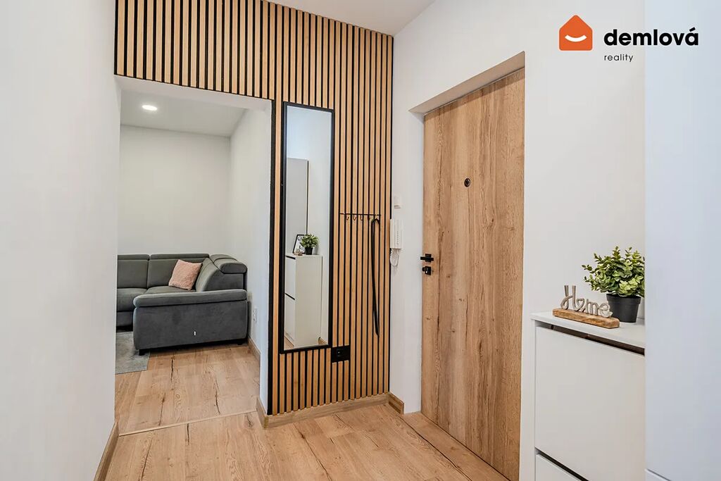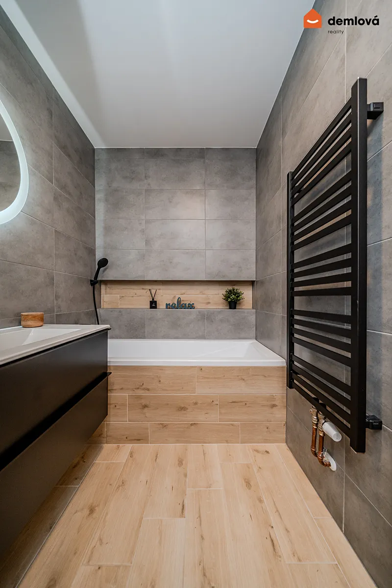 Kuchyňská linka ve vysokém lesku a moderním designu je vybavena spotřebiči včetně myčky, multifunkční trouby, indukční varné desky, digestoře, mikrovlnné trouby a lednice s mrazákem. Koupelna v elegantním provedení s vanou, umyvadlem se stylovou skříňkou a závěsnou toaletou. V celém bytě jsou nové interiérové dveře včetně zárubní, podlahy mají nivelaci a kvalitní plovoucí podlahu s V-spárou. Neprůchozí pokoje nabízejí dostatek prostoru a soukromí. Z bytu je příjemný výhled na jihozápadní stranu.