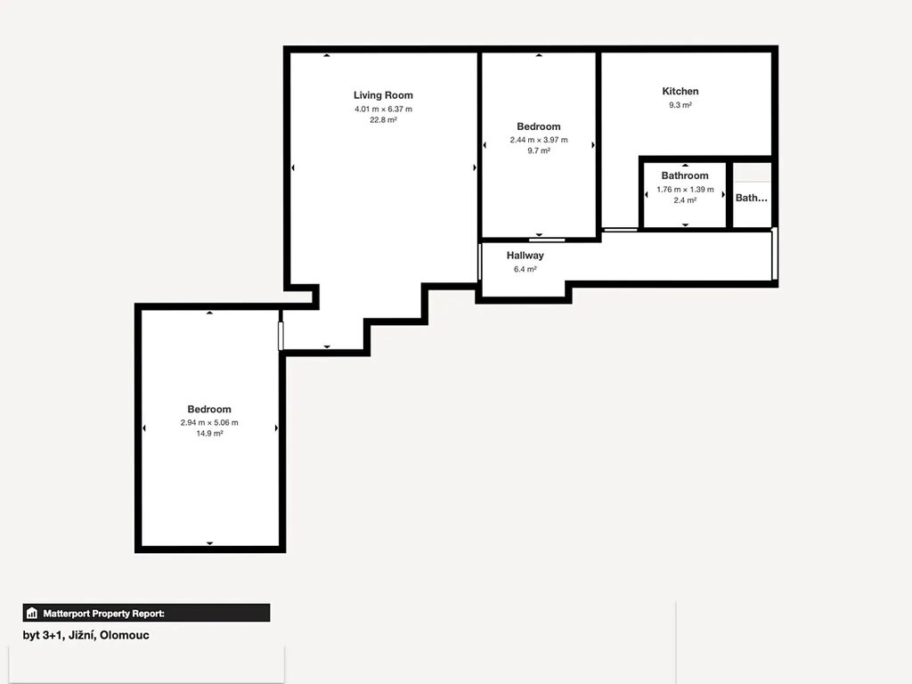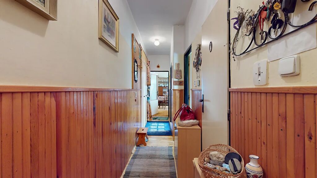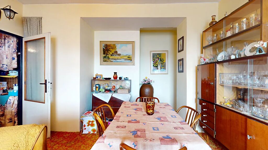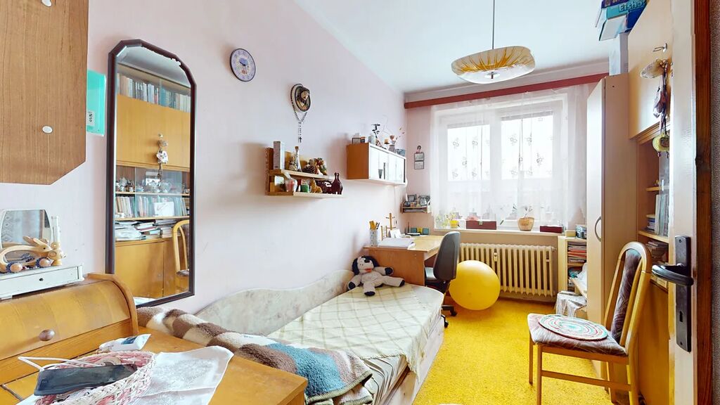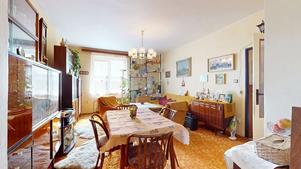 Byt má výměru 61,46 m² a je v původním stavu, ideální pro rekonstrukci. Zásadní výhodou je velmi praktické dispoziční řešení, kdy je ložnice chytře umístěna za obývacím pokojem – nabízí tak majitelům klid a soukromí i při každodenním provozu domácnosti.