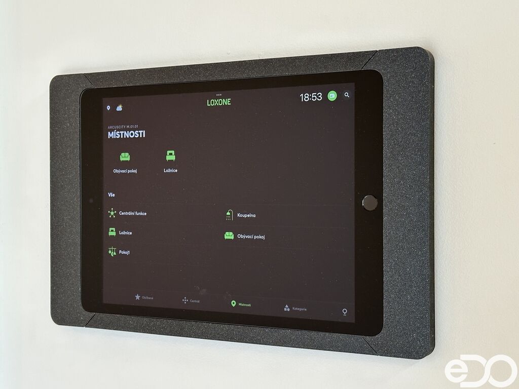 Byt dále disponuje moderním smart home systémem Loxone, který umožňuje mimo jiné inteligentní ovládání venkovních žaluzií, regulaci vytápění a chlazení v každé místnosti či monitorování spotřeby vody a energie.