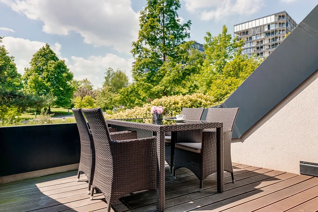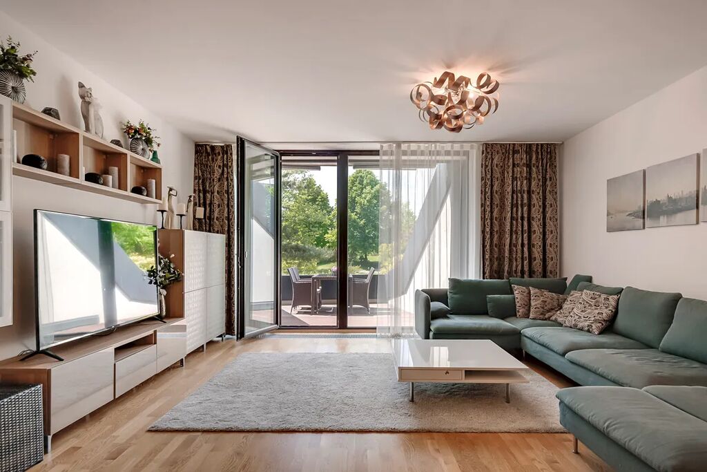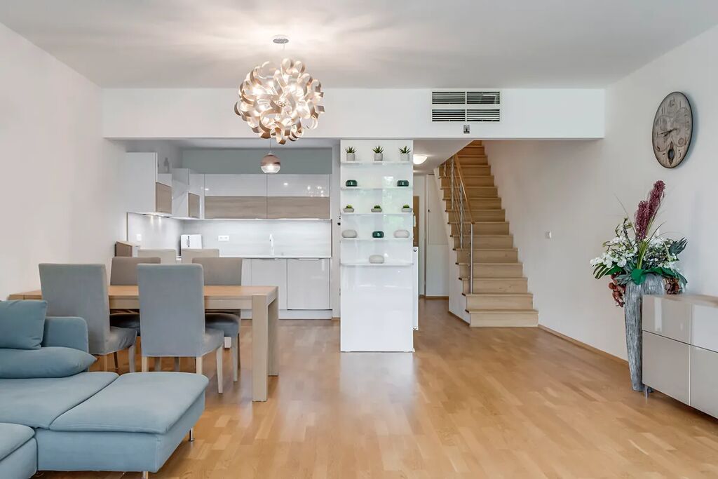 Celý byt je navržen v originálním designu – bydlení, kde zažíváte komfort srovnatelný s rodinným domem.